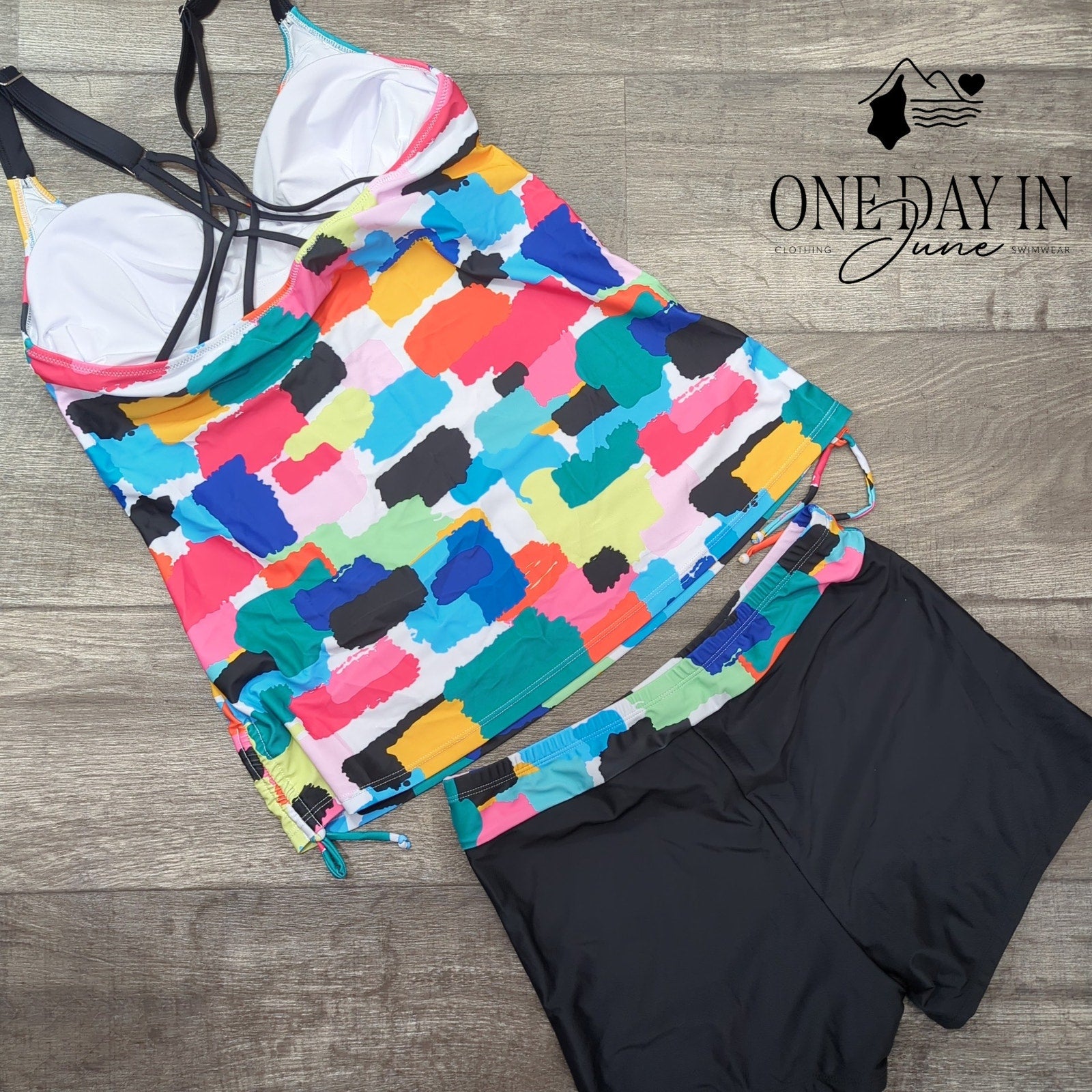 Tempt Me Strappy Back Boy Short Tankini Swimsuit Size L