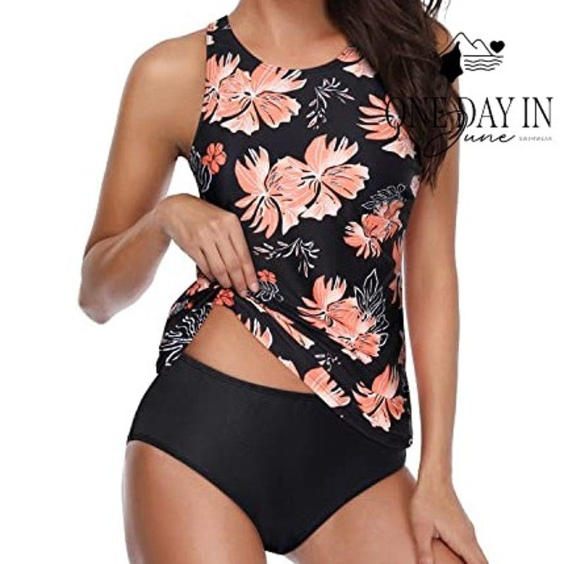 Tags: #TropicalTankini #BlackOrangeBikini #WomensSwimwear