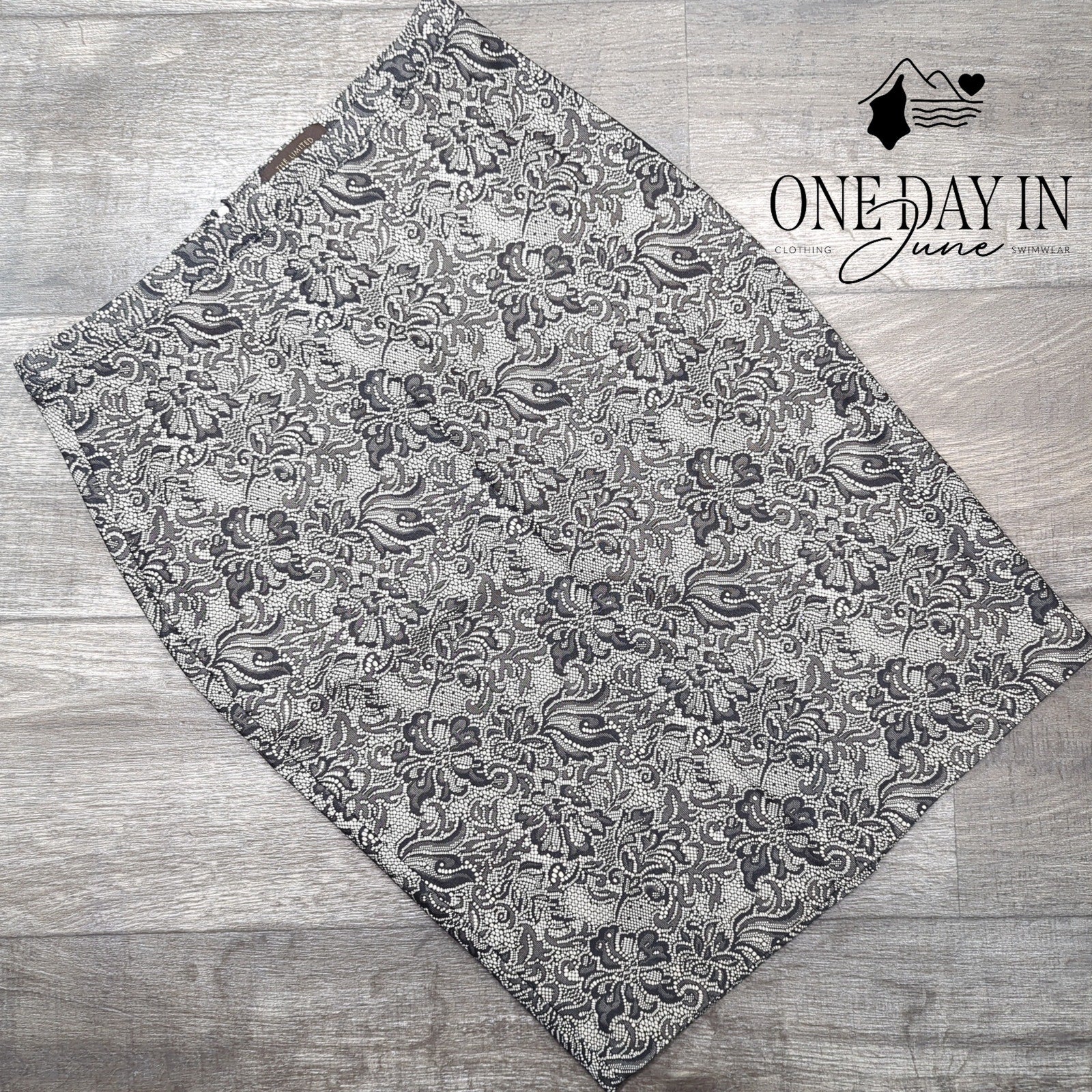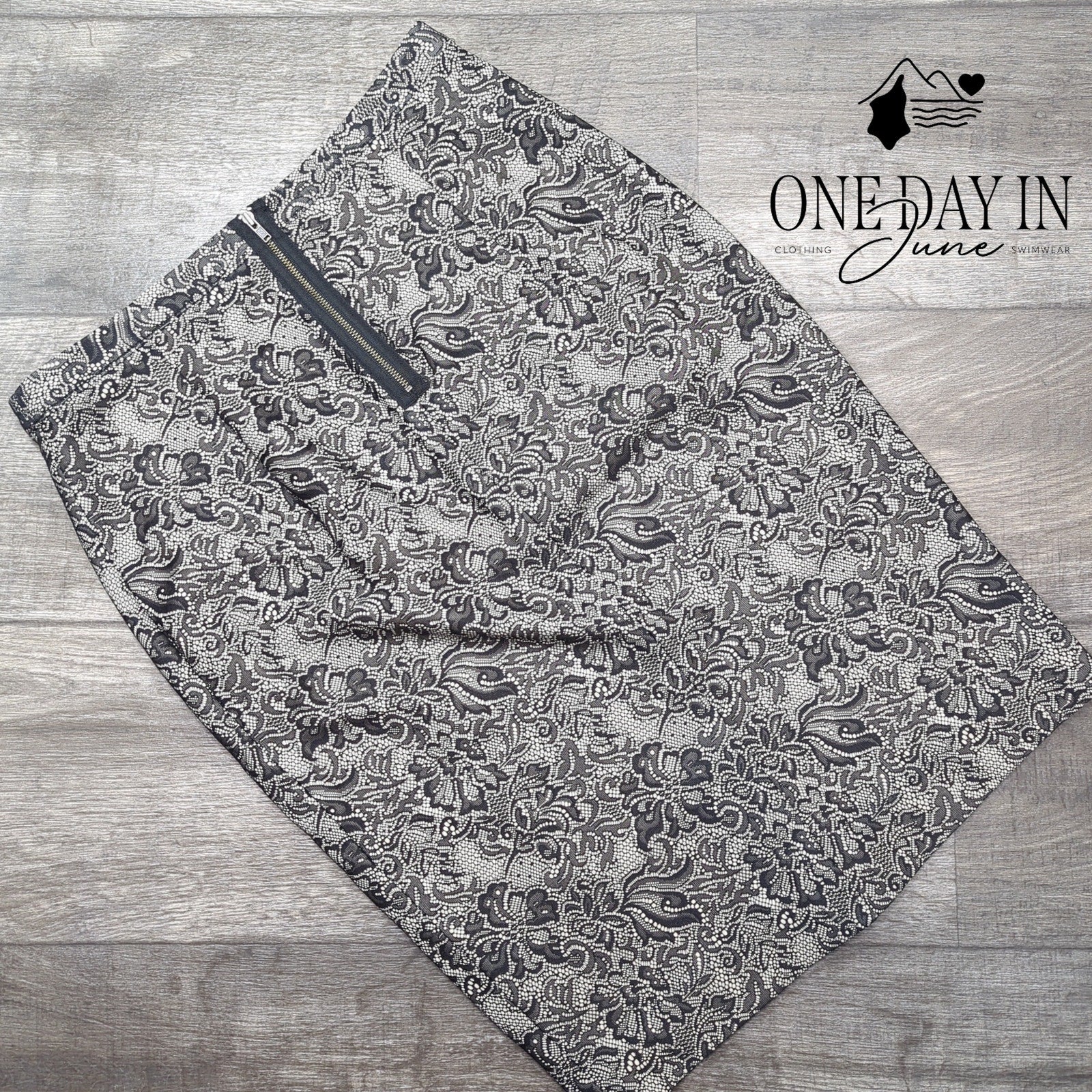 This sleek and chic pencil skirt in black and tan will make you look quite grand! With nylon so fine and a fit so divine, this Limited treasure is sure to bring pleasure!