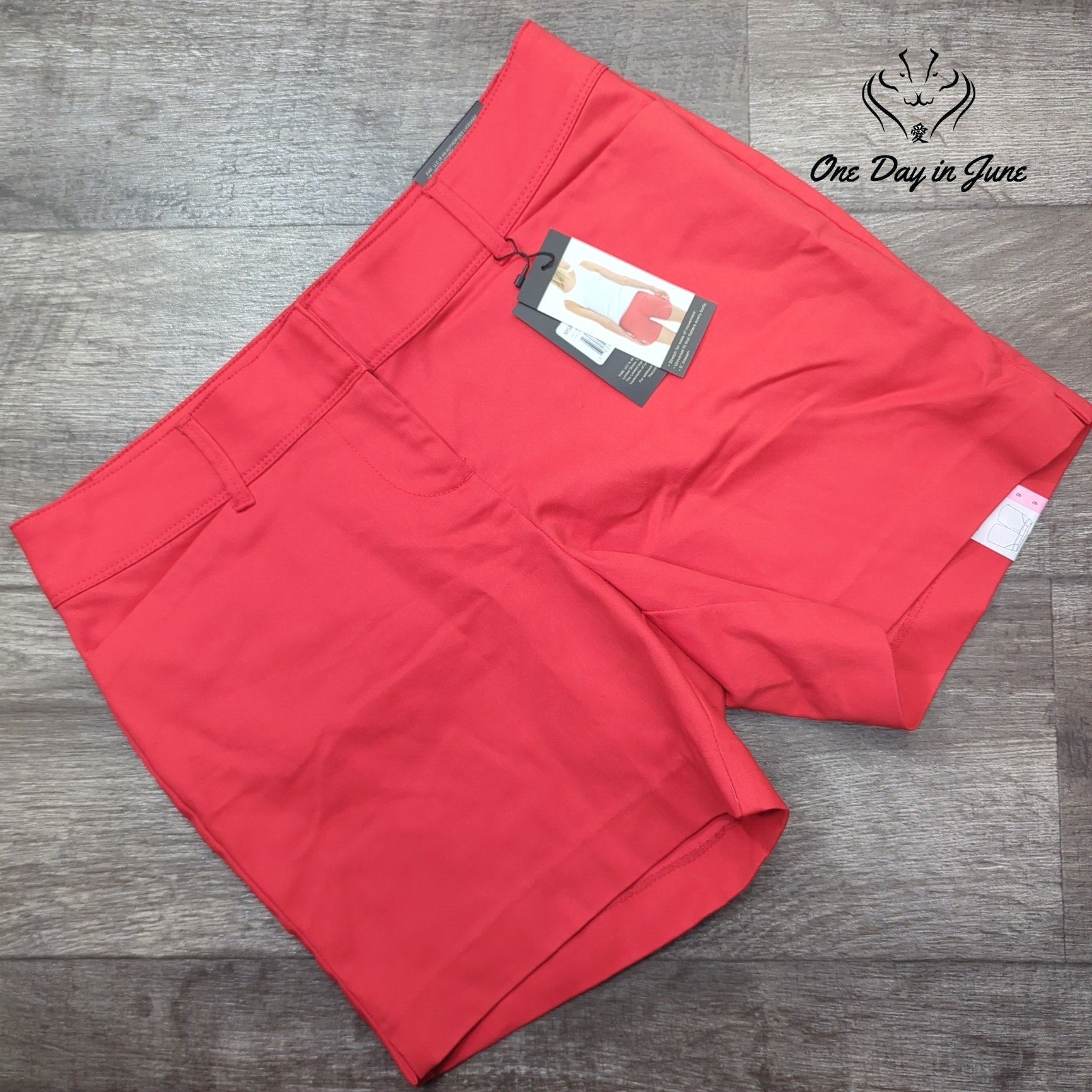 A radiant pair of crimson shorts from The Limited, crafted with meticulous tailoring and unwavering attention to detail. These new shorts, still bearing their original tags, blend cotton, polyester, and spandex for a luxurious fit that moves gracefully with the body while maintaining its impeccable shape.