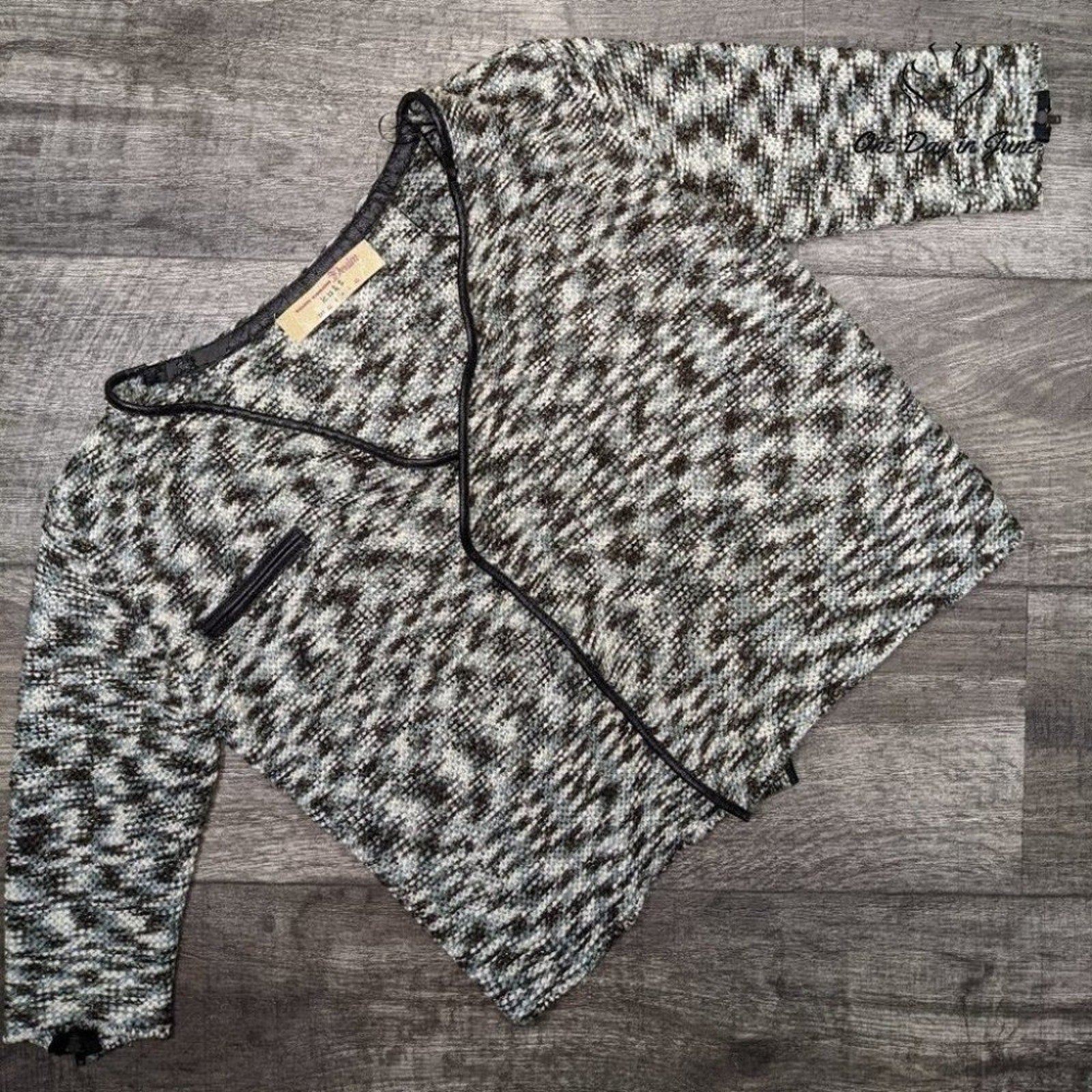 Luxuriant patterns dance across this splendid three-quarter sleeve cardigan from Tom Tailor, where vibrant hues interweave like jazz notes on a summer evening. Pristine and perfectly preserved, this polyester wonder drapes with graceful precision, offering both warmth and sophistication for any occasion.