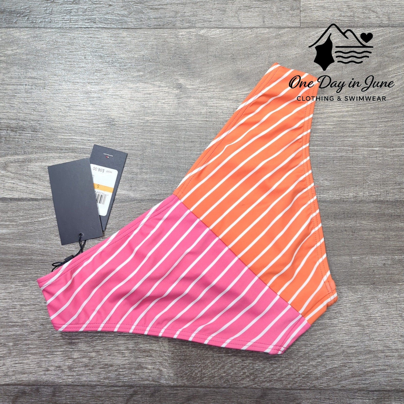 A wild splash of pink and orange, this Tommy Hilfiger bikini bottom slaps you across the consciousness like a sunset scorching the desert horizon while your mind spirals into the abyss of summer madness. The moderate coverage keeps you decent among the savage hordes of beach-goers, all while the polyester-spandex blend hugs your contours with the tenacity of a desperate politician clinging to his last promise.