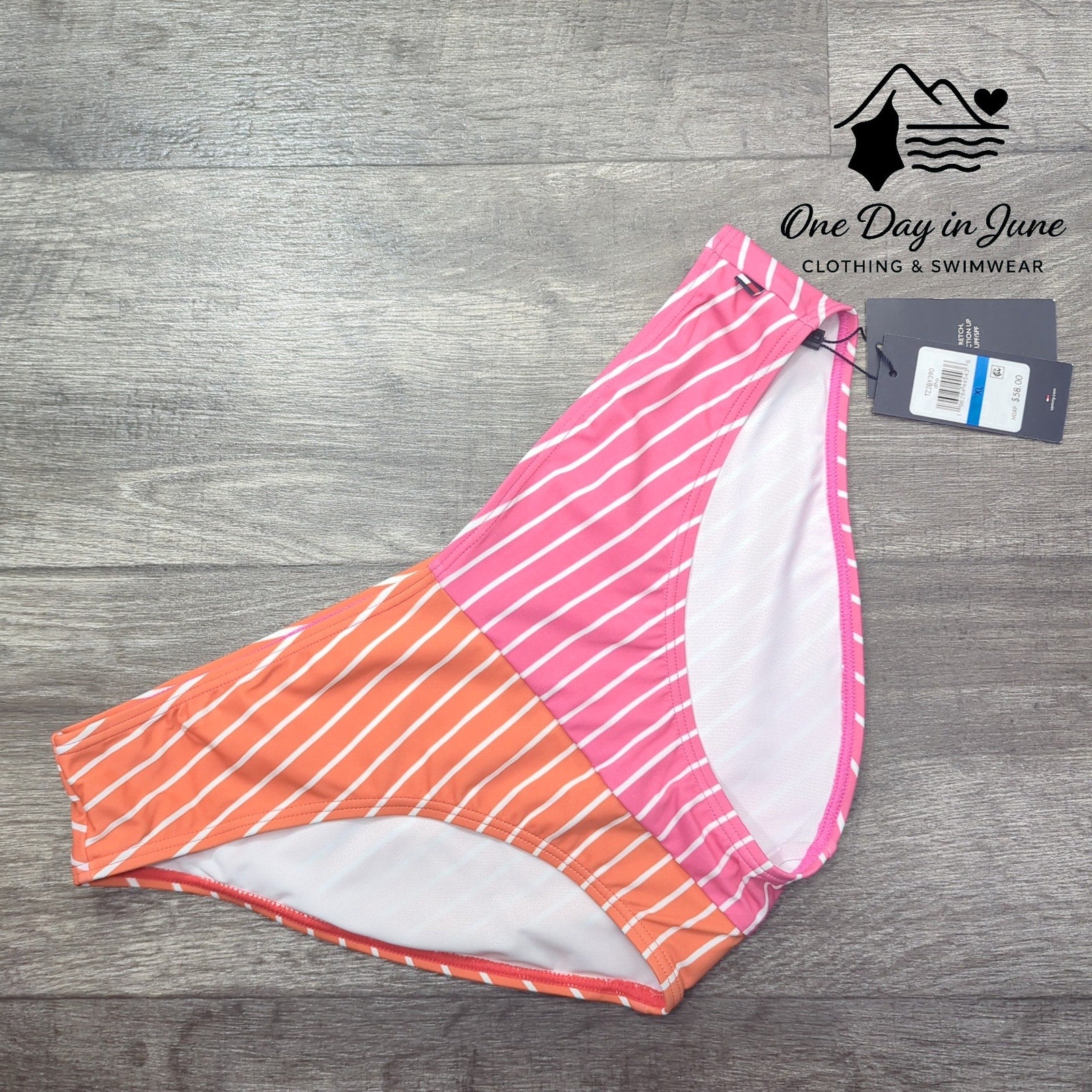 A wild splash of pink and orange, this Tommy Hilfiger bikini bottom slaps you across the consciousness like a sunset scorching the desert horizon while your mind spirals into the abyss of summer madness. The moderate coverage keeps you decent among the savage hordes of beach-goers, all while the polyester-spandex blend hugs your contours with the tenacity of a desperate politician clinging to his last promise.