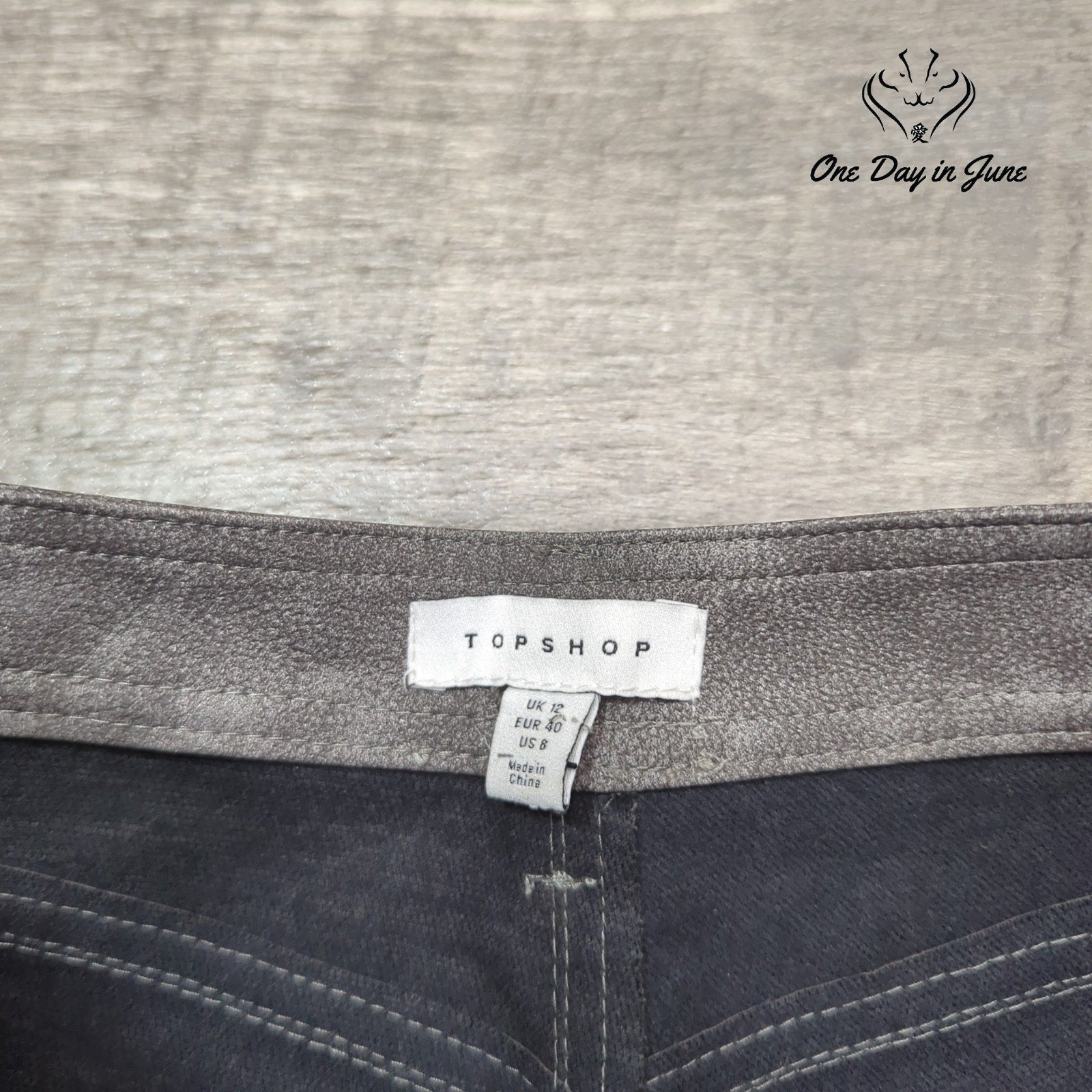 Sleek and sophisticated, these Topshop straight leg pants exude effortless chic. Crafted from supple faux leather in a versatile grey hue, they offer the perfect blend of edgy glamour and refined elegance for the modern woman.