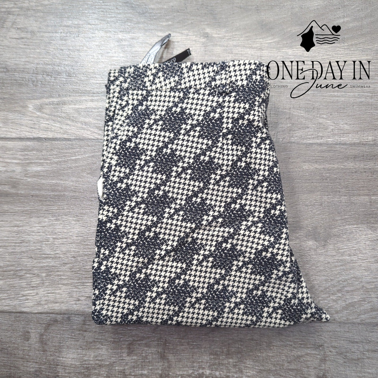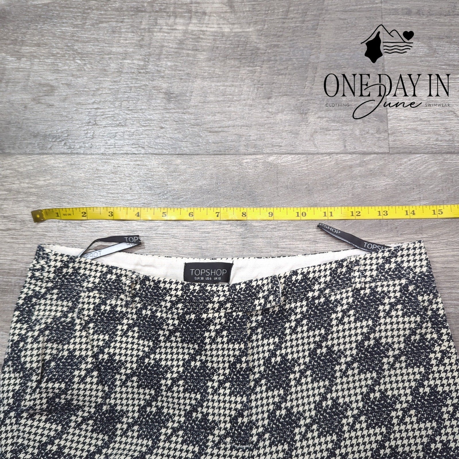 These charming houndstooth cropped pants from Topshop present a most delightful study in black and white, offering the wearer an air of refined sophistication that would not be out of place in the finest drawing rooms. Crafted from a cotton blend that promises both comfort and elegant drape, they possess that enviable quality of appearing effortlessly stylish whilst maintaining perfect propriety. In like new condition, they await a discerning lady who appreciates the timeless appeal of such a classic pattern.