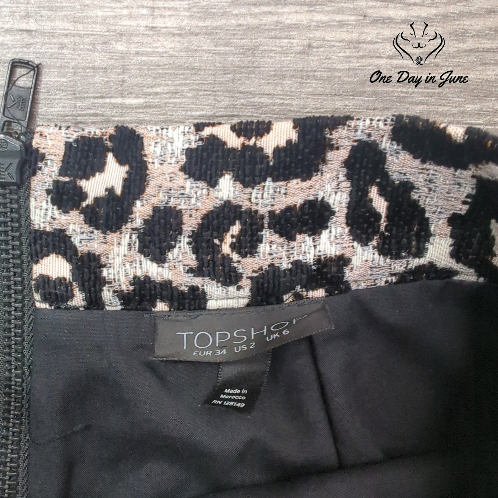Dappled with the wild spirit of the Jazz Age, this Topshop mini skirt prowls the boundaries of elegance and daring. Its textured leopard print, a symphony of viscose, polyester, and cotton, whispers of moonlit adventures and champagne-soaked nights.