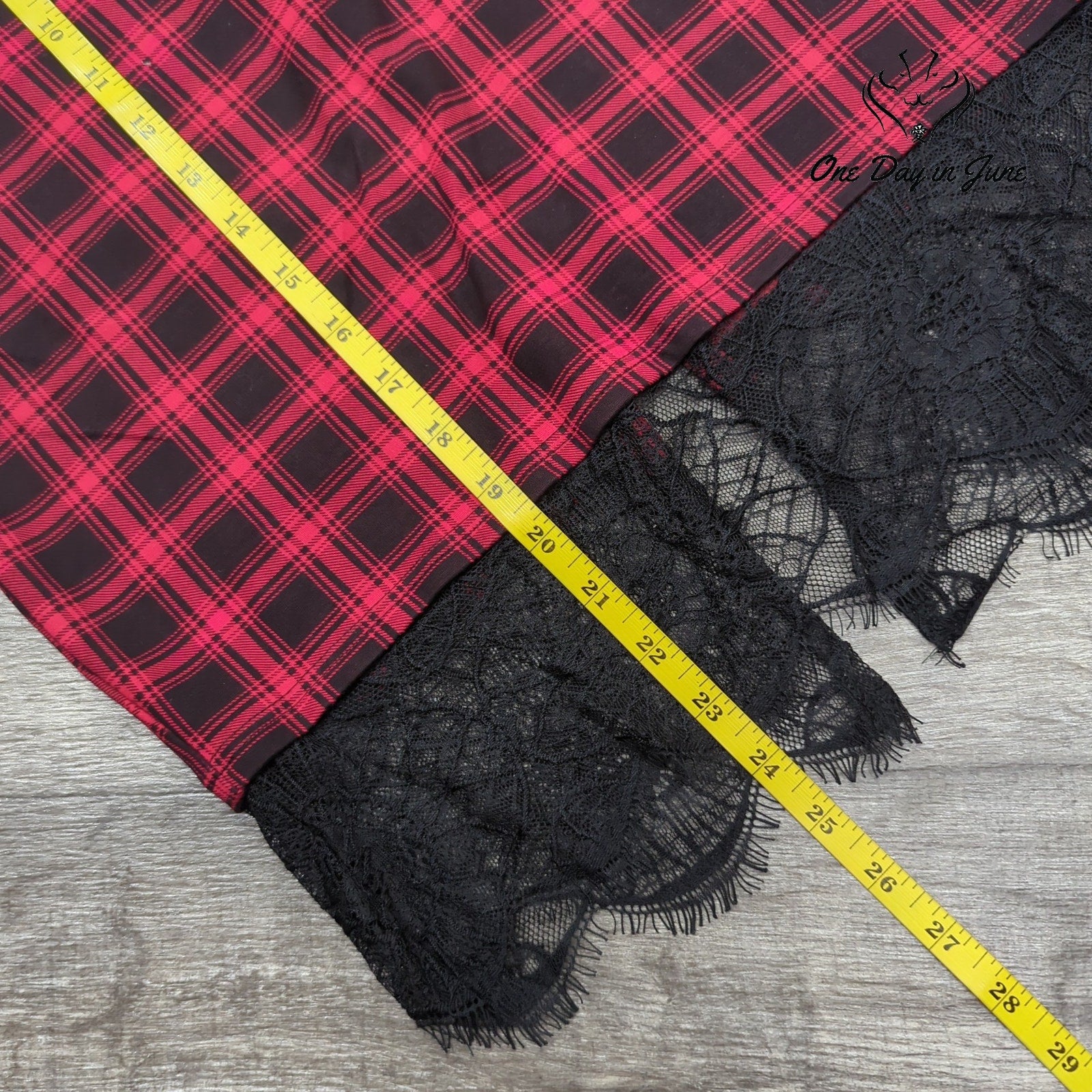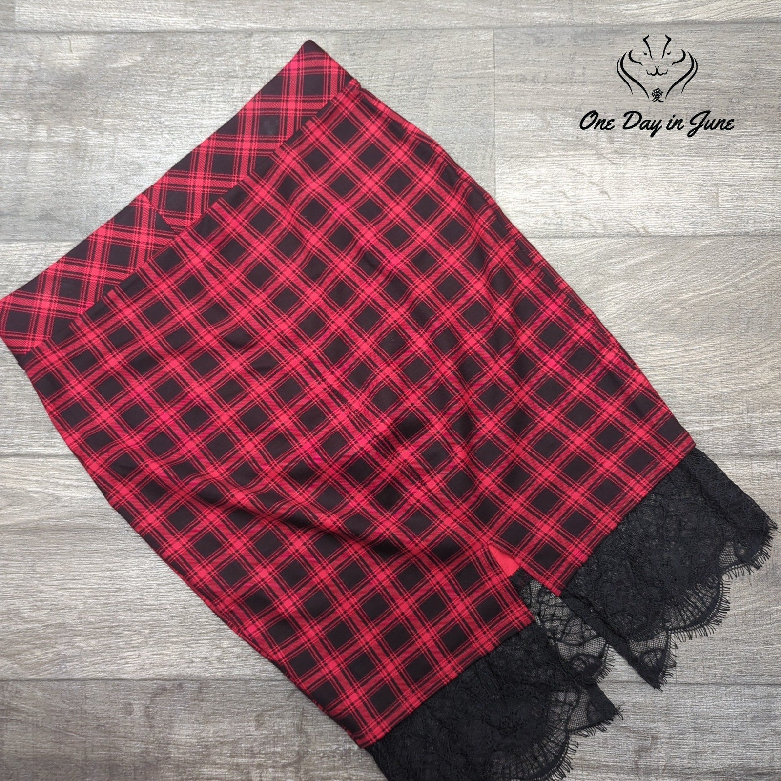 A most becoming pencil skirt in a striking shade of red, crafted with a delightfully stretchy blend of rayon, nylon, and spandex for the utmost comfort and elegance. This gently worn Torrid creation hugs one's curves in the most flattering manner, making it an essential piece for any modern lady's wardrobe.