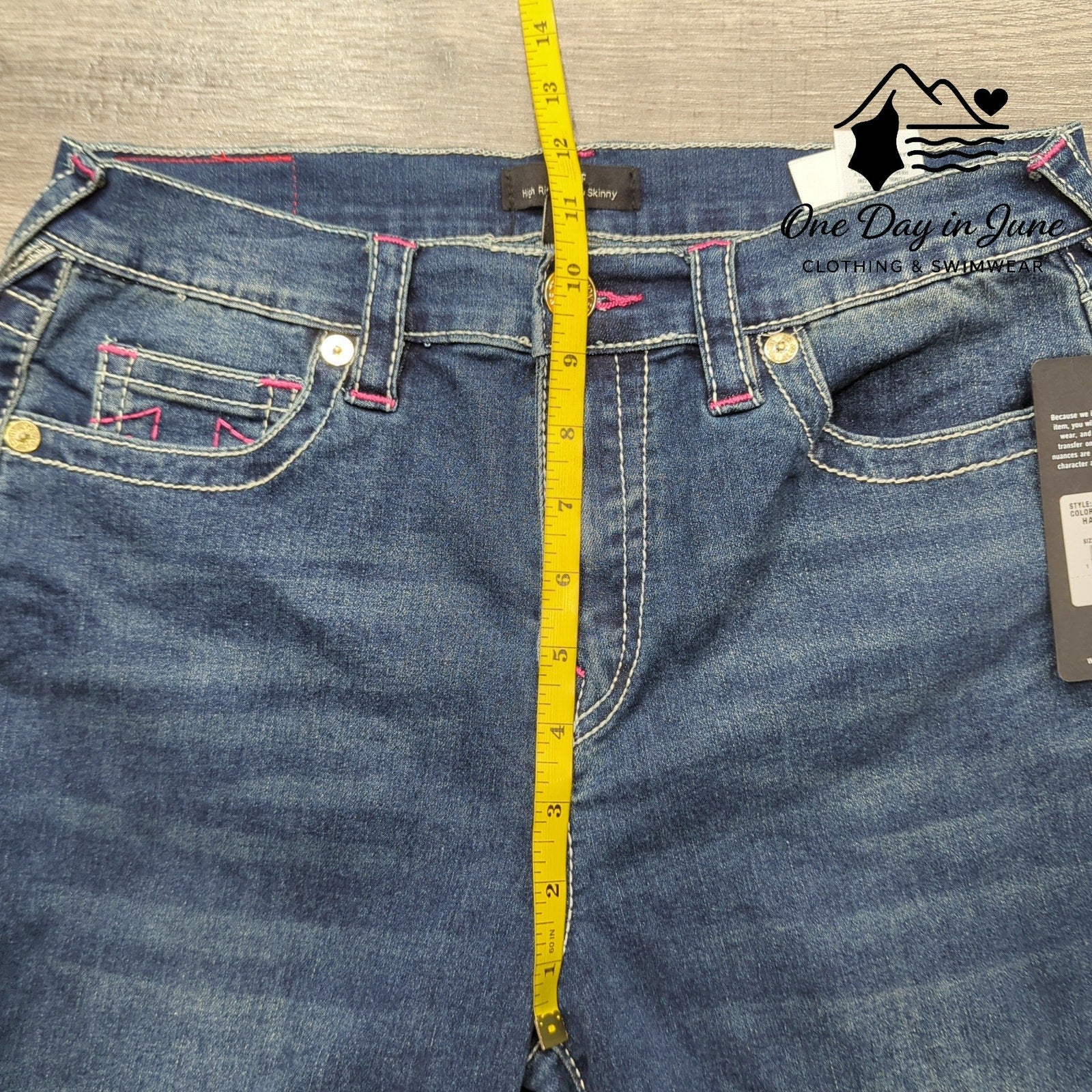 Oh my, these jeans are snazzy and blue, True Religion Halles that are sparkling new! They're high-rise and super skinny too, with a fit so fantastic they're waiting for you!