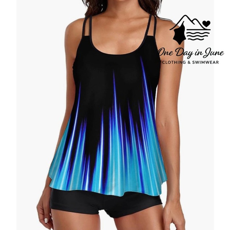 This is no ordinary tankini, it's a savage ride into the deep blue aqua void, my friends. The striking Blue/Black Urchics boyshort creation wraps around your mortal coil like a second skin crafted from polyester and spandex, a slick armor against the relentless waves that pound the beaches where normal people dare not tread. When you emerge from the water wearing this beast, the sun will catch you in a moment of perfect, terrible beauty — too much to stand, too rare to ever forget.