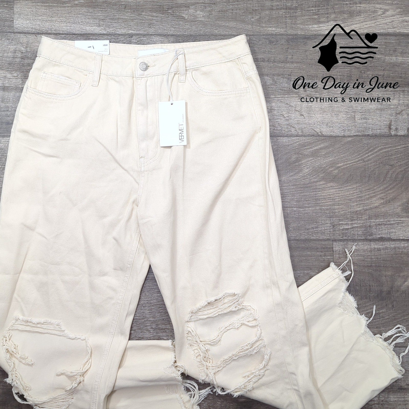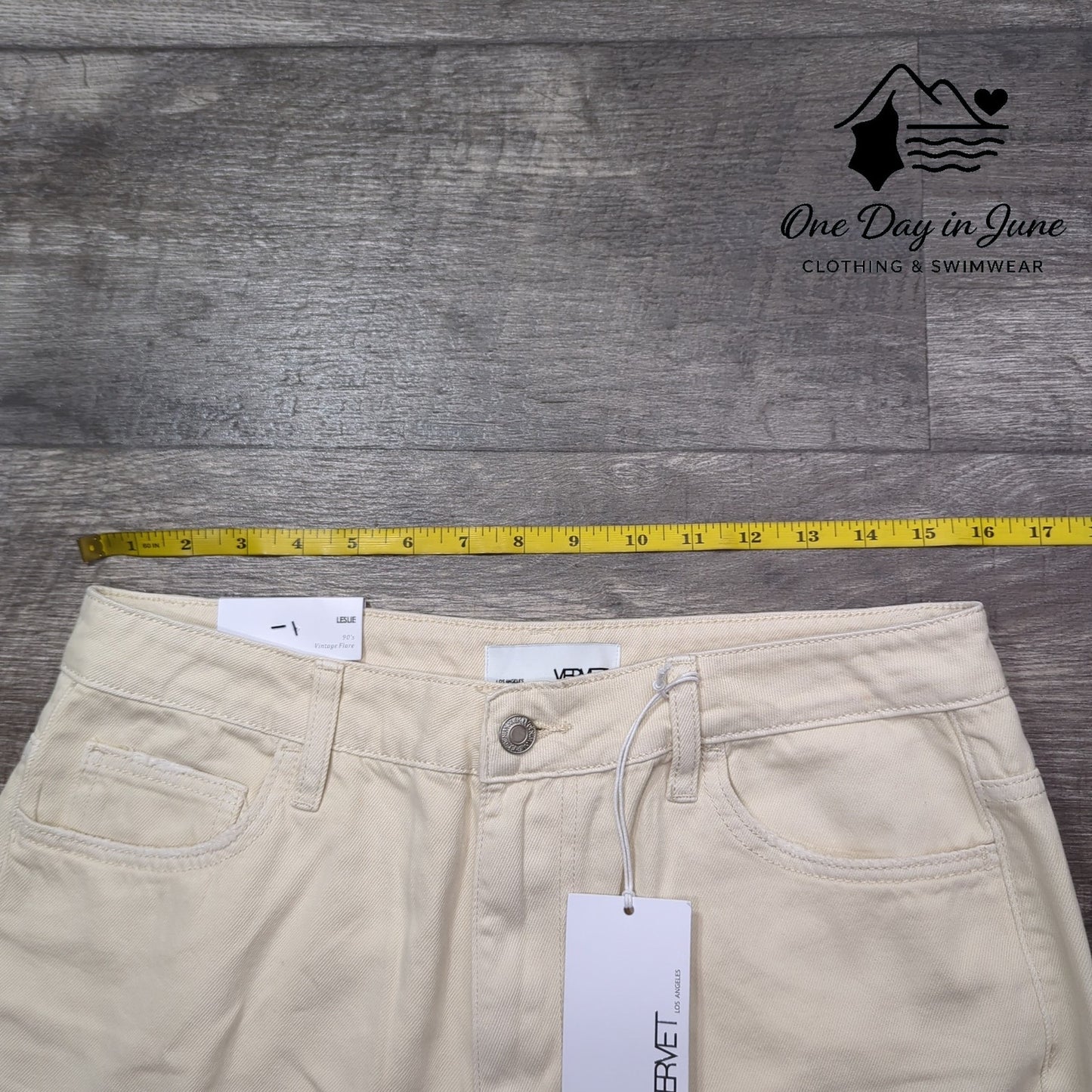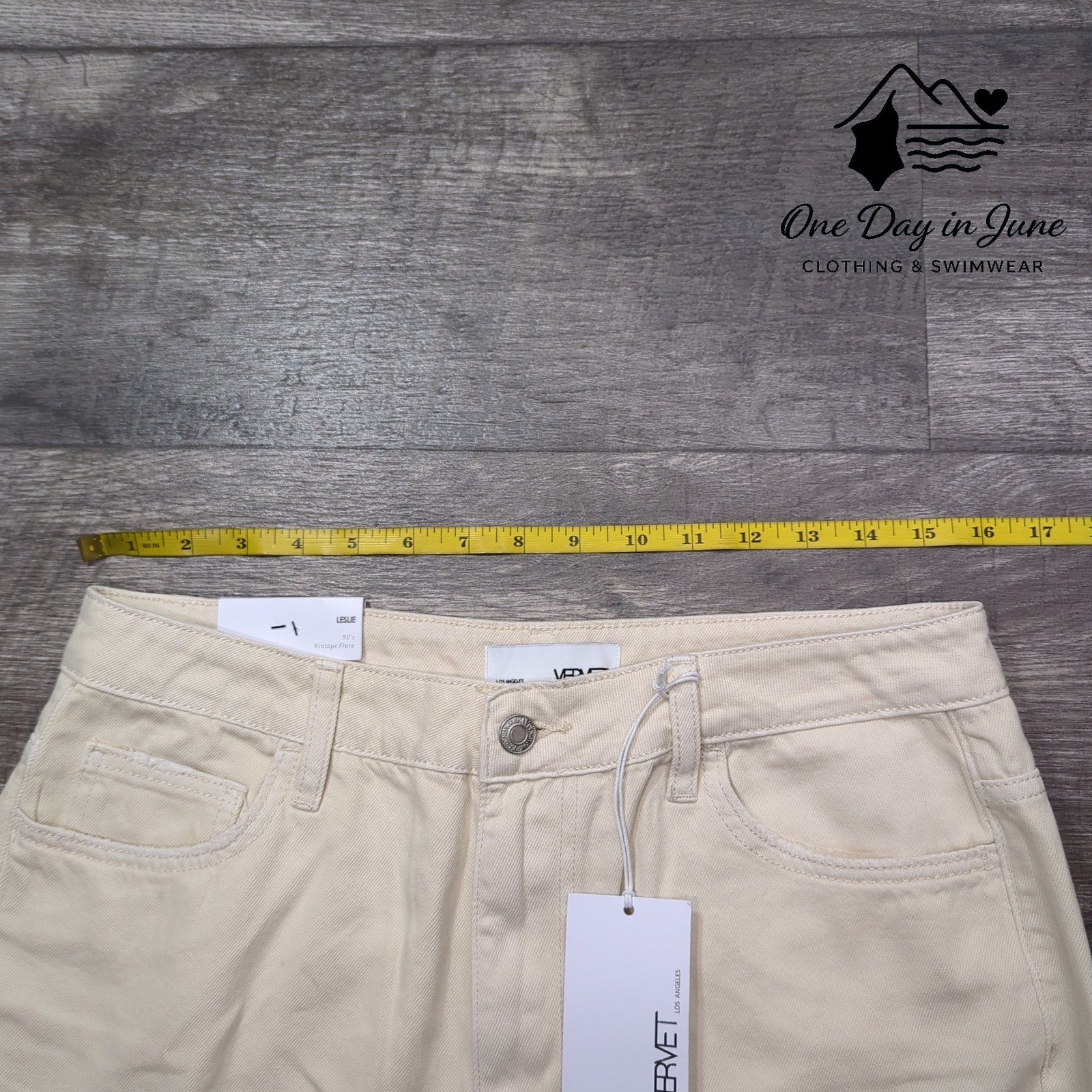 These aren't just jeans - they're a one-way ticket to the savage heart of 90's nostalgia, tan-colored denim screaming across the desert of fashion like some twisted historical artifact from a better time. The distressed fabric tells a story of beautiful savagery, pristine with tags still attached, the cotton manifesting as a physical confrontation with the grotesque modernism we've all become too comfortable with. Vervet's Leslie flares aren't wearing you - you're merely the vessel for their cosmic journey through the twisted corridors of contemporary style.