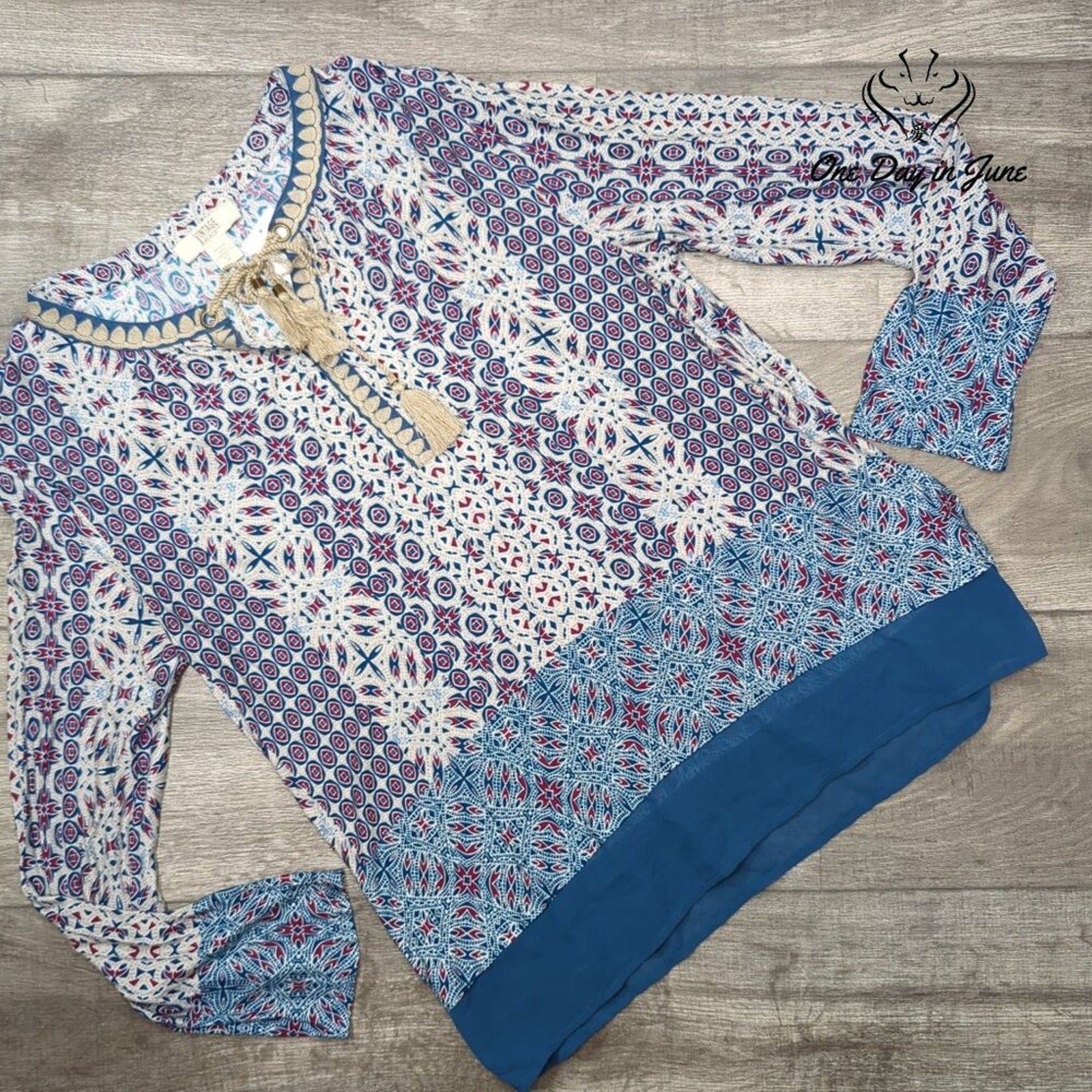Dive headfirst into a kaleidoscope of bohemian splendor with this Vintage America long sleeve top. An untamed riot of color and charm, it's the siren call of wanderlust stitched in luxurious viscose. Perfectly crafted for the wild-hearted woman ready to conquer both the urban jungle and the open road.