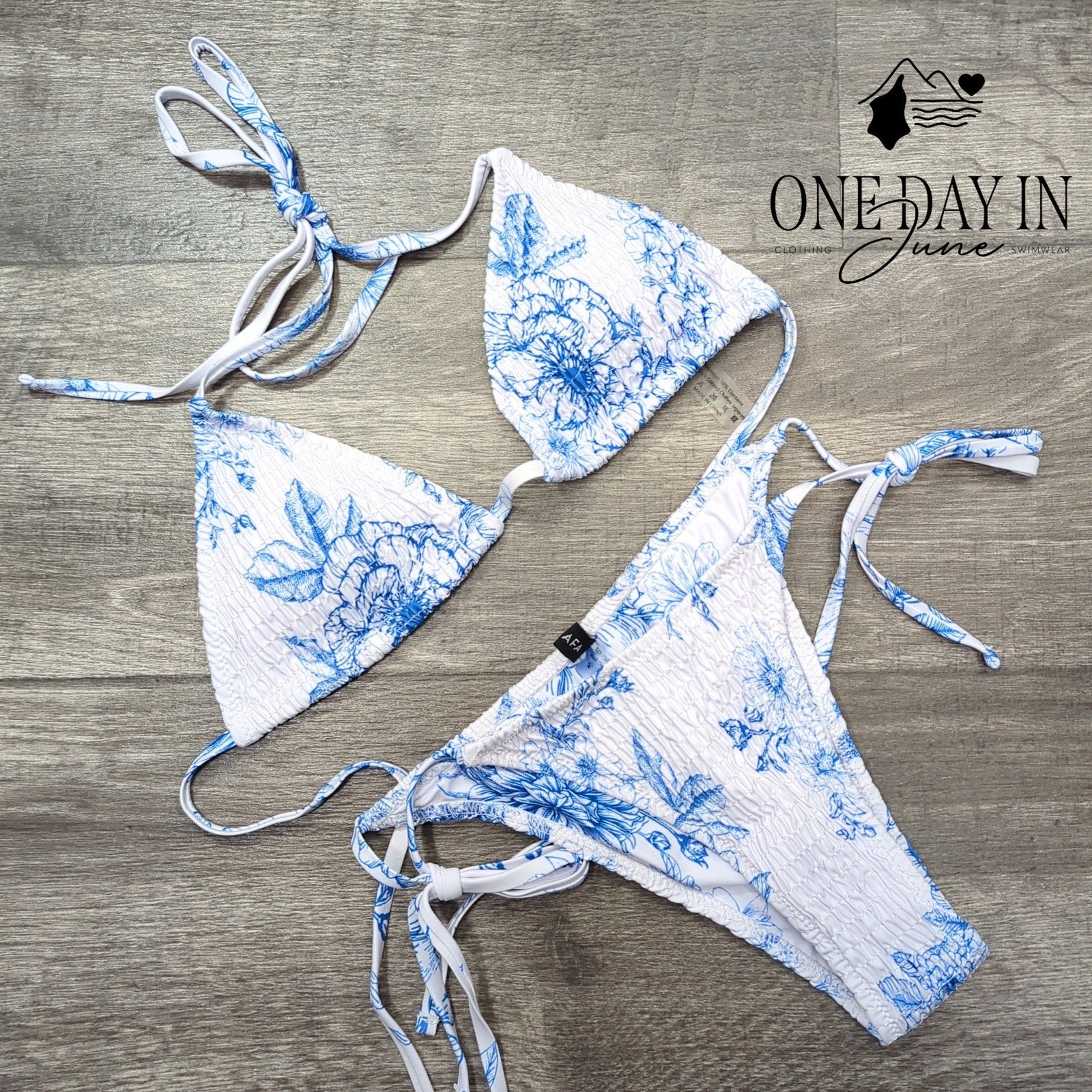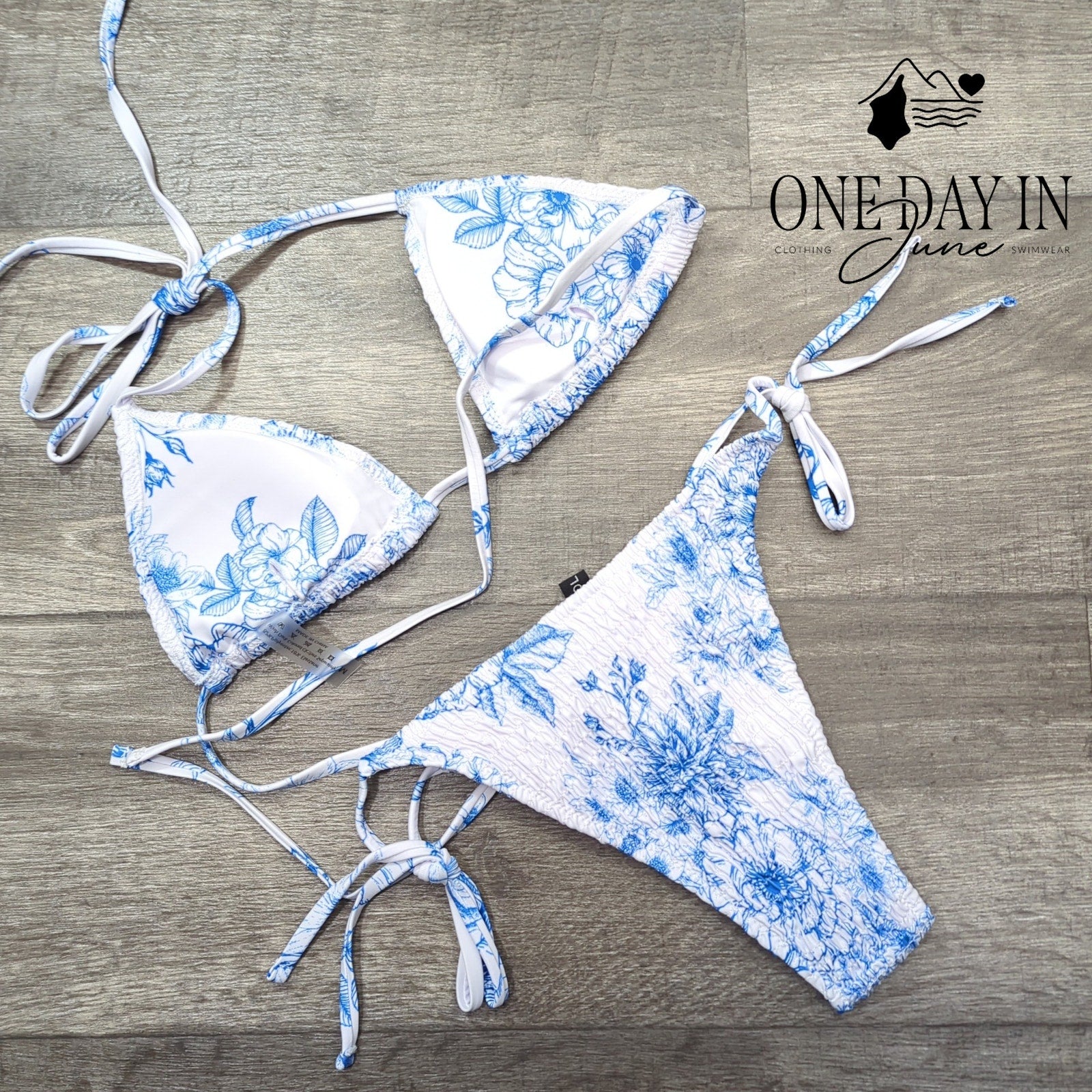 Volafa Smocked Triangle Tie Side Cheeky Bikini Swimsuit Size M