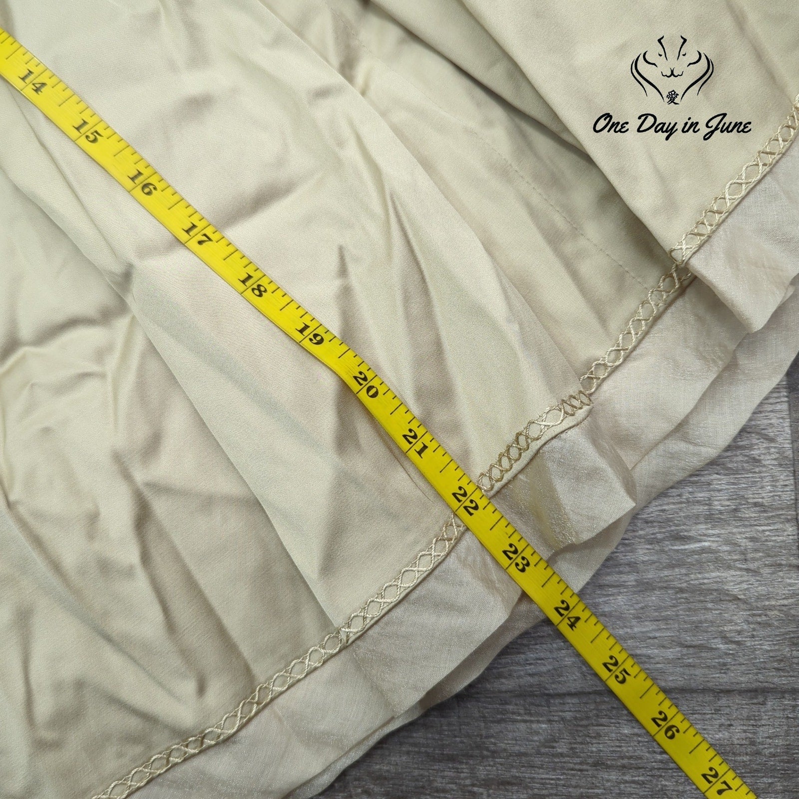 The skirt swirls like a sandstorm in the Mojave, a pleated whirlwind of tan fabric ready to dance across the asphalt jungle. It's a White House Black Market creation, pristine as a politician's smile, with enough stretch to accommodate a wild night of swerving through neon-lit streets and smoky backrooms. This A-line wonder is the sartorial equivalent of a well-timed quip, sharp enough to cut through the haze of a surreal evening.