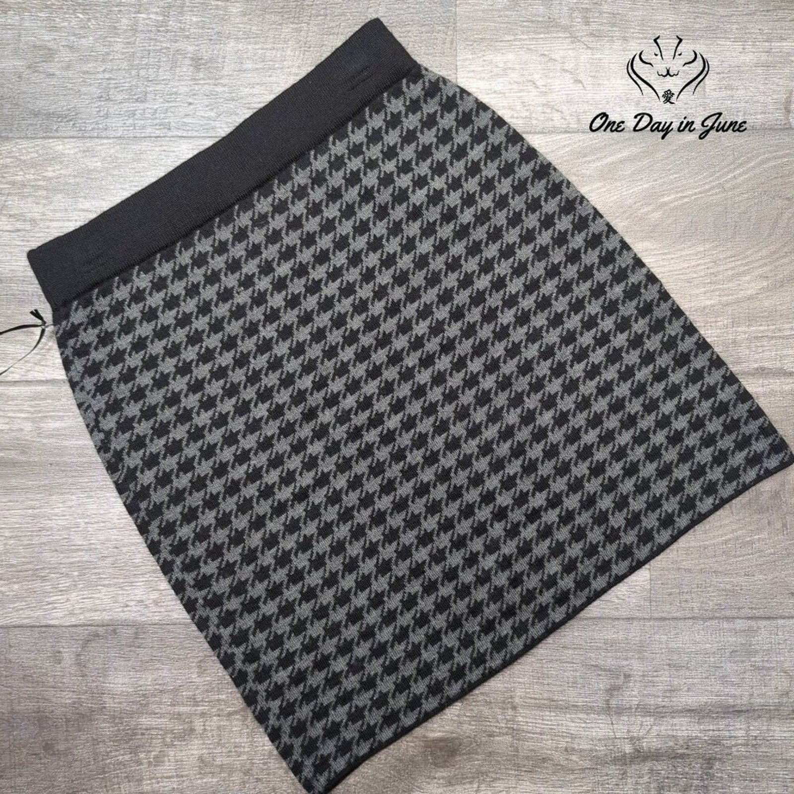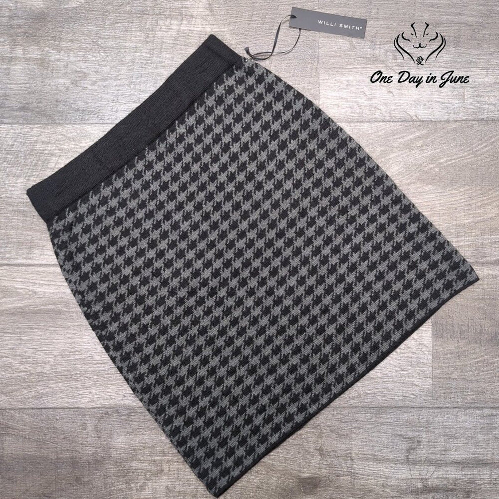Behold the dark elegance of the Willi Smith Wool Blend Pull On Skirt, a sartorial symphony in grey and black that whispers secrets of high fashion. New with tags, this sleek piece is crafted from a harmonious blend of wool and acrylic, ready to shatter mundane wardrobes and elevate your style narrative to epic proportions.