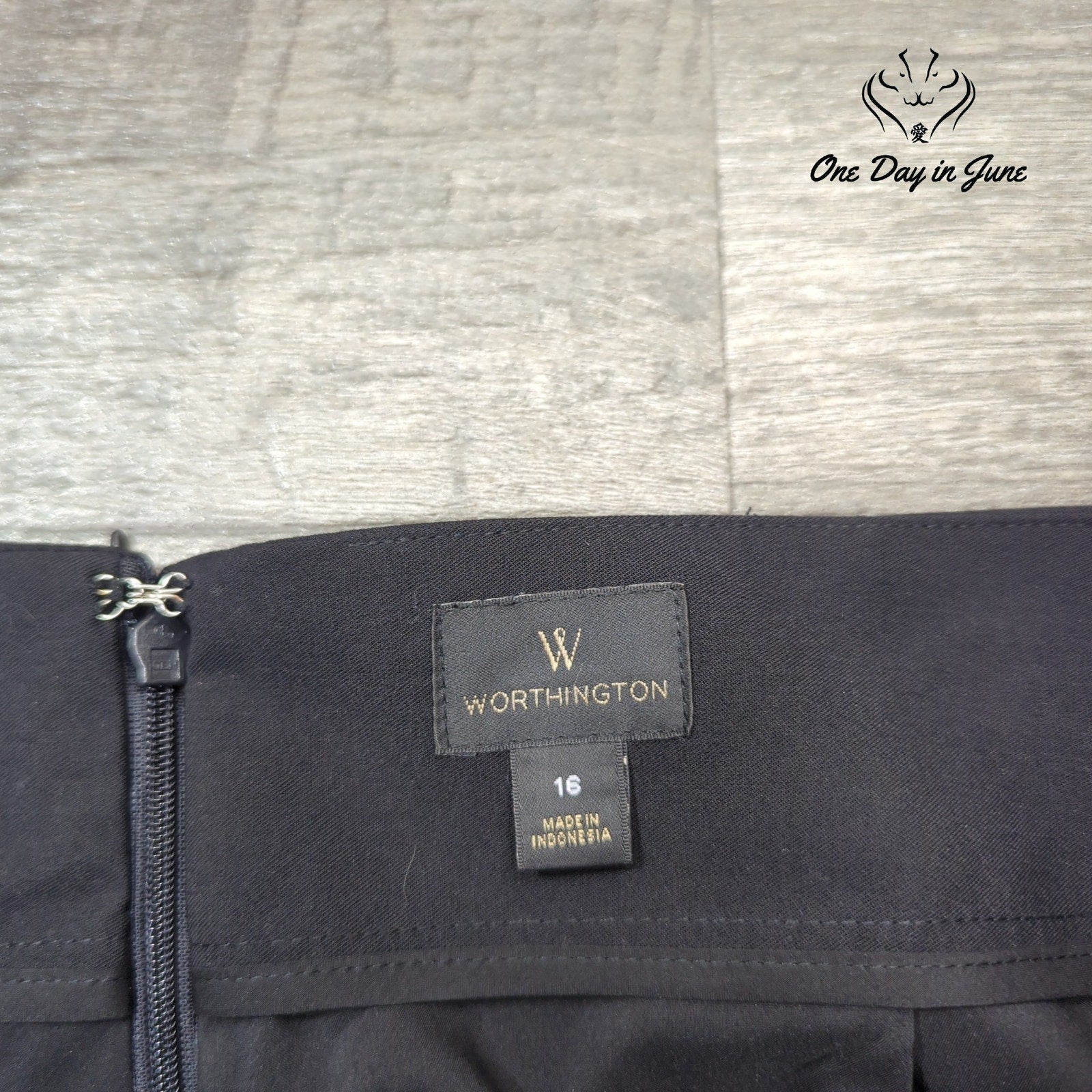 Sleek and sophisticated, this ebony Worthington pencil skirt embodies timeless elegance. Its tailored silhouette, crafted from a blend of polyester, rayon, and spandex, promises both comfort and style for the modern woman.