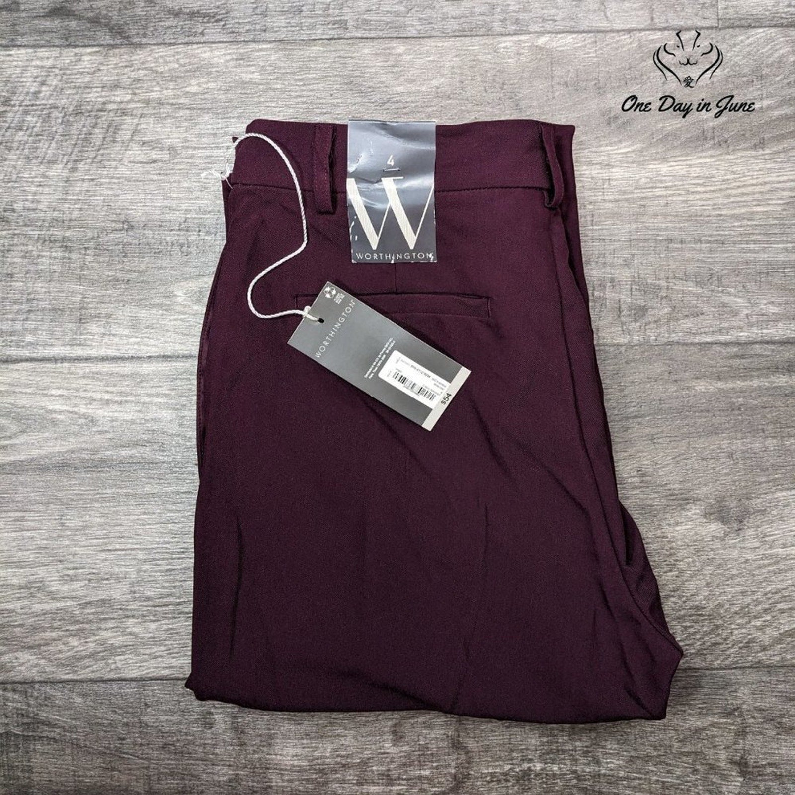 Oh my, these plum pants are perfectly new, with straight-leg styling that's totally you! A Worthington classic in smooth fabric blend, these dress pants will be your professional friend!
