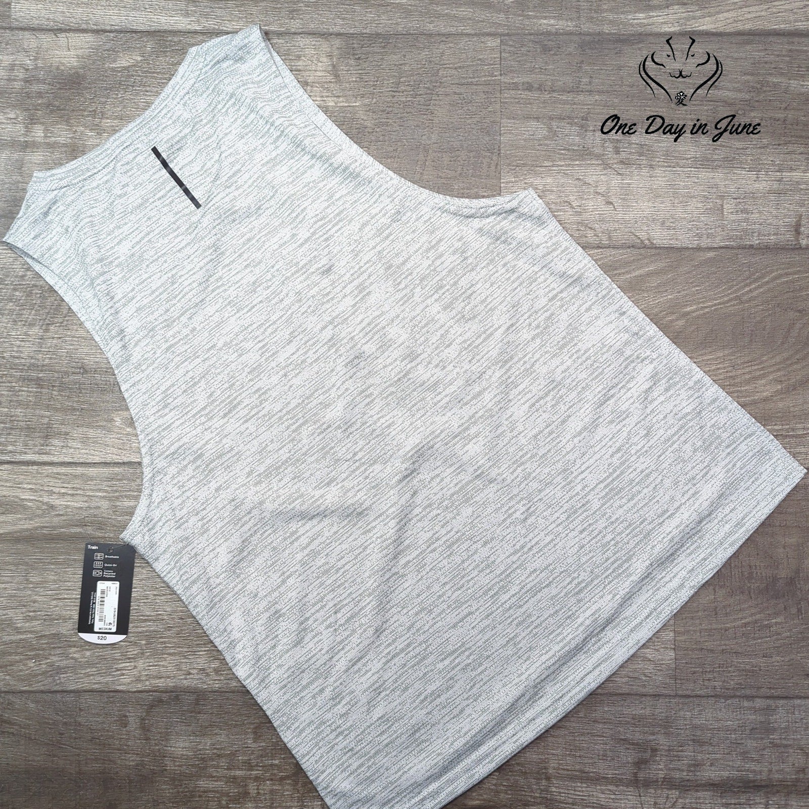 From working out to chilling about, this muscle tee's a comfy grey delight, made with polyester and spandex just right! Stay cool and breezy while looking so neat, in this brand new Xersion that simply can't be beat!