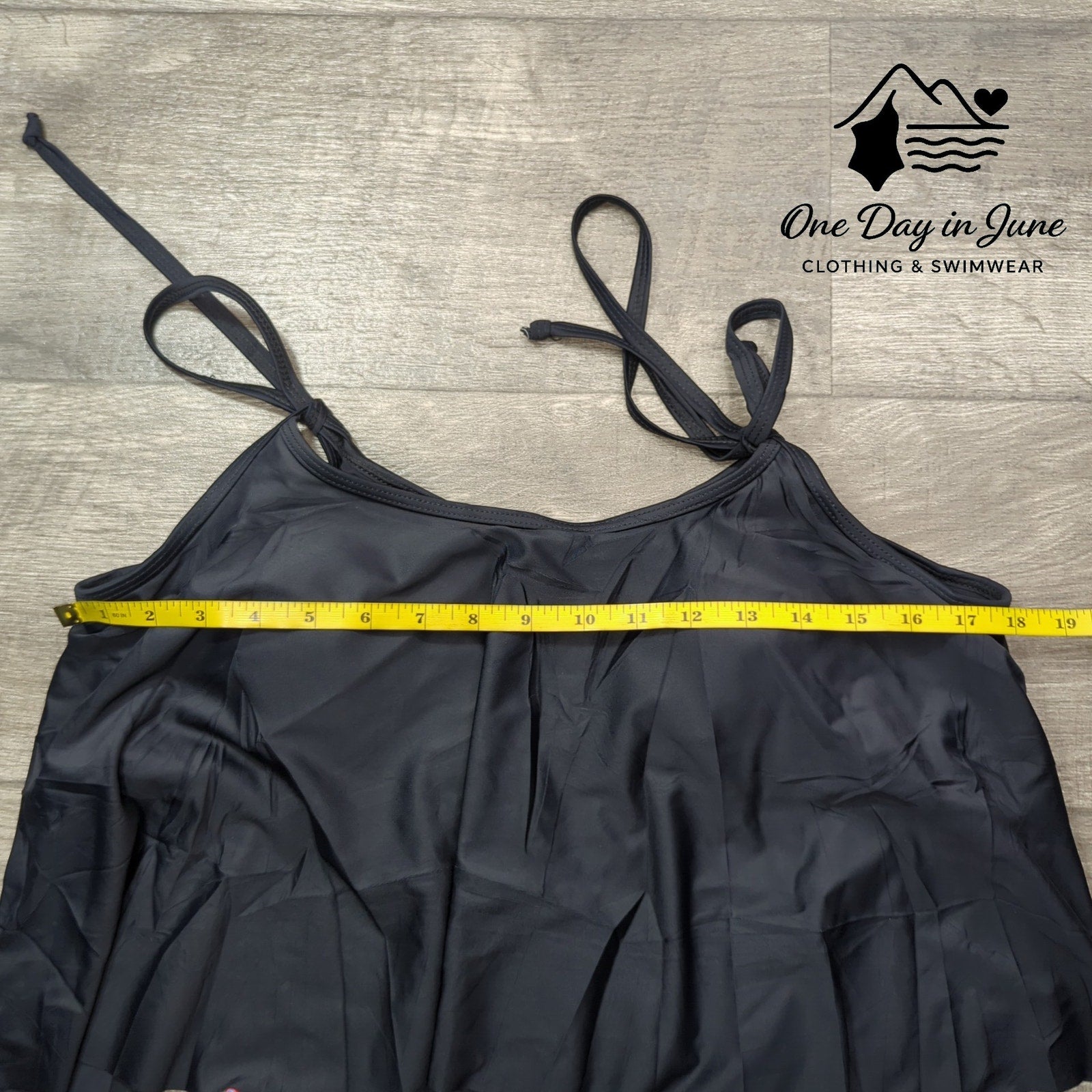 A floral flounce bikini so fancy and neat, with high-waisted charm that can't be beat! This black Xuanfel swimsuit, new and pristine, will make your beach day absolutely supreme!