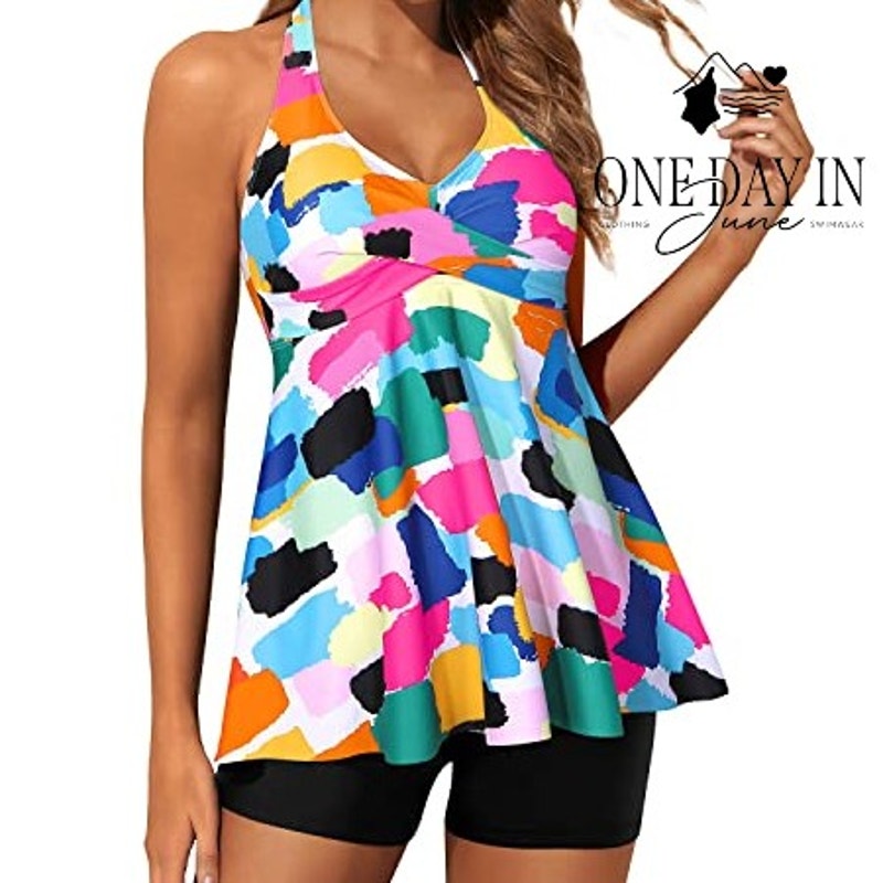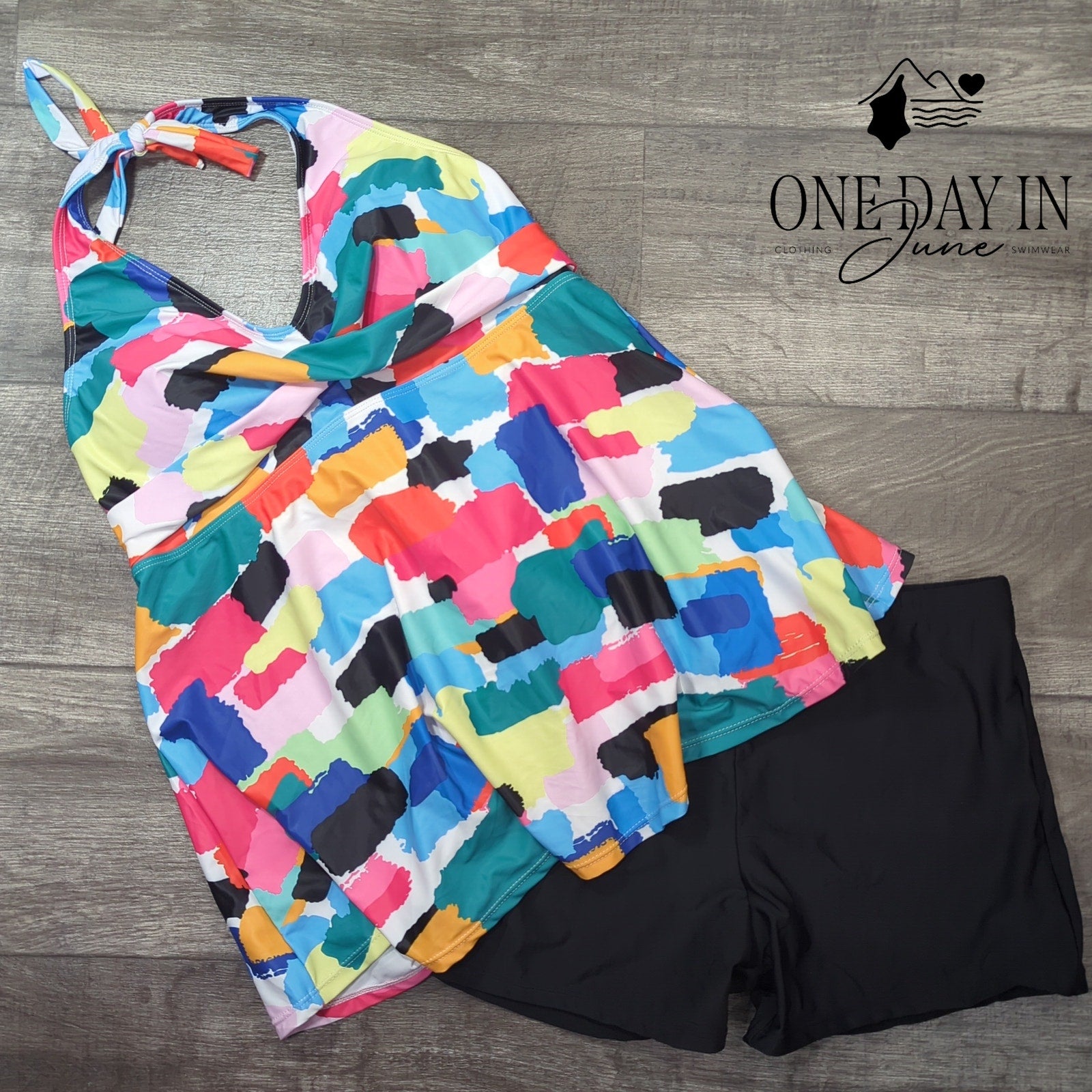 Yonique Halter Boyshort Tankini Swimsuit Size XL