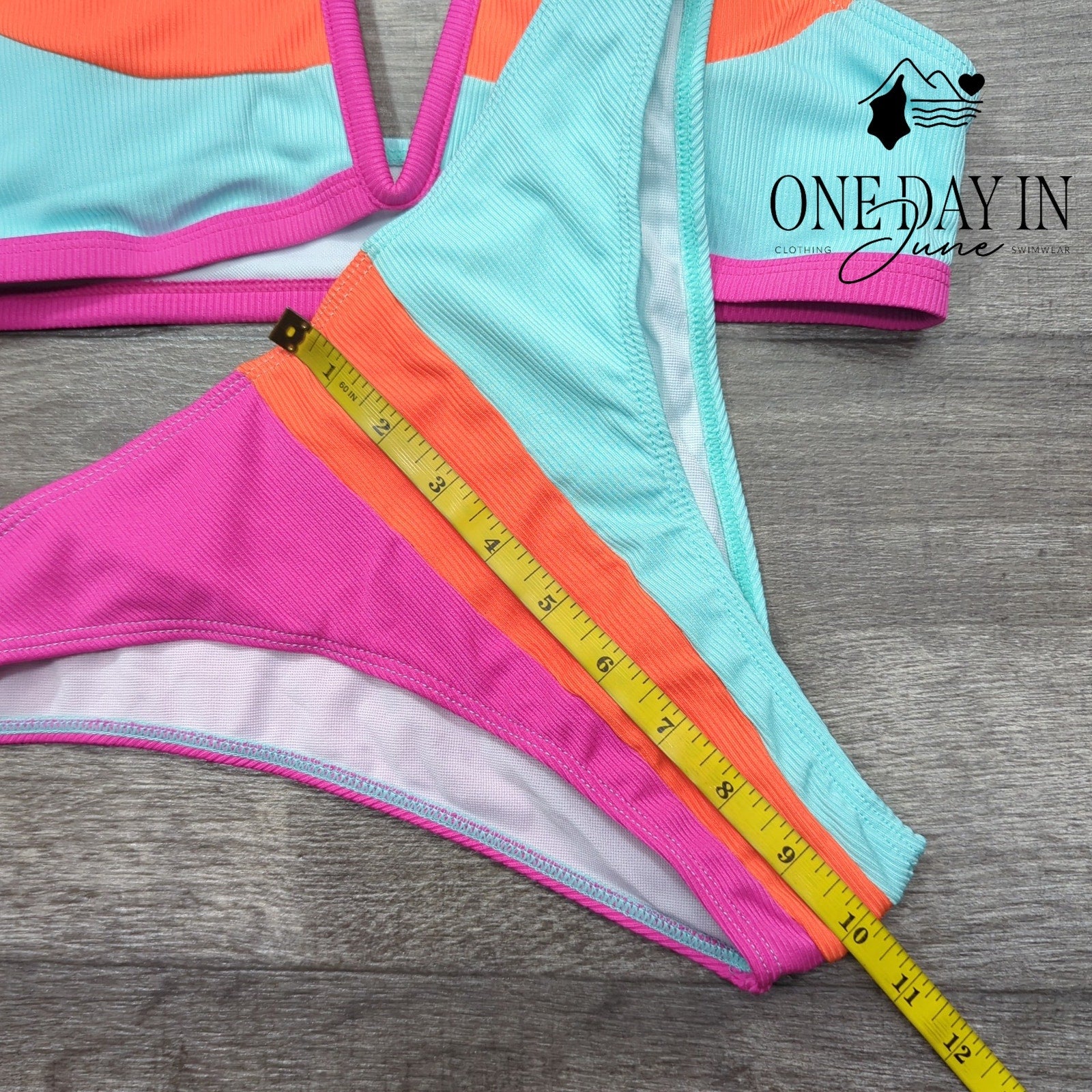 Zaful Color Block Textured Bikini Swimsuit Size M