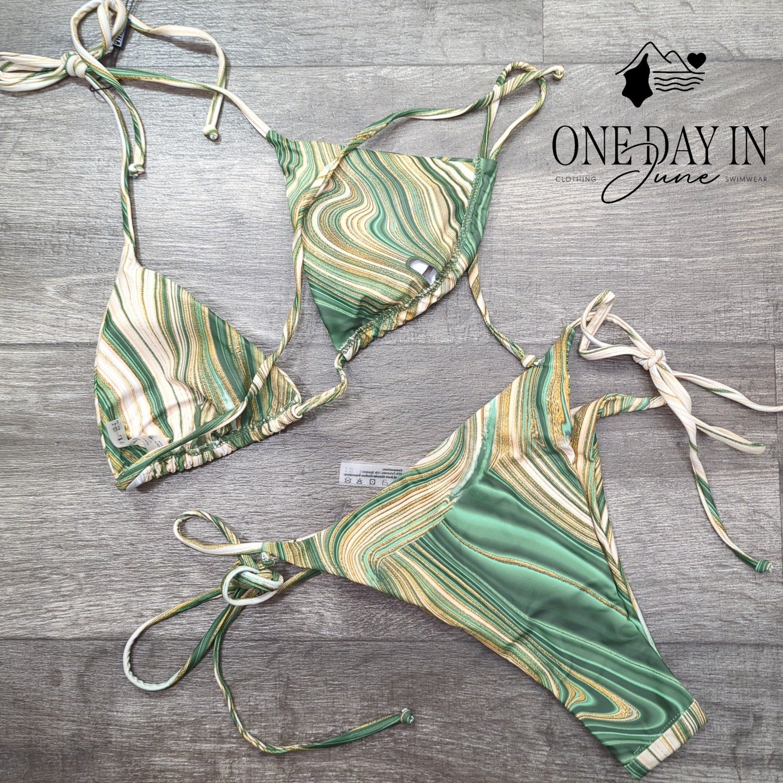This tan bikini arrives like a desert mirage of summer possibilities, complete with halter ties that dance in the wind and side ties that whisper promises of beach adventures yet to come. The polyester-spandex blend moves like liquid sunshine across skin, while the tie-back design suggests a certain devil-may-care attitude toward conventional swimwear constraints. Brand new and ready to transform any poolside gathering into a scene from some fever dream of endless summer, this Zaful creation beckons to those who understand that swimwear is not merely clothing but a statement of intent.