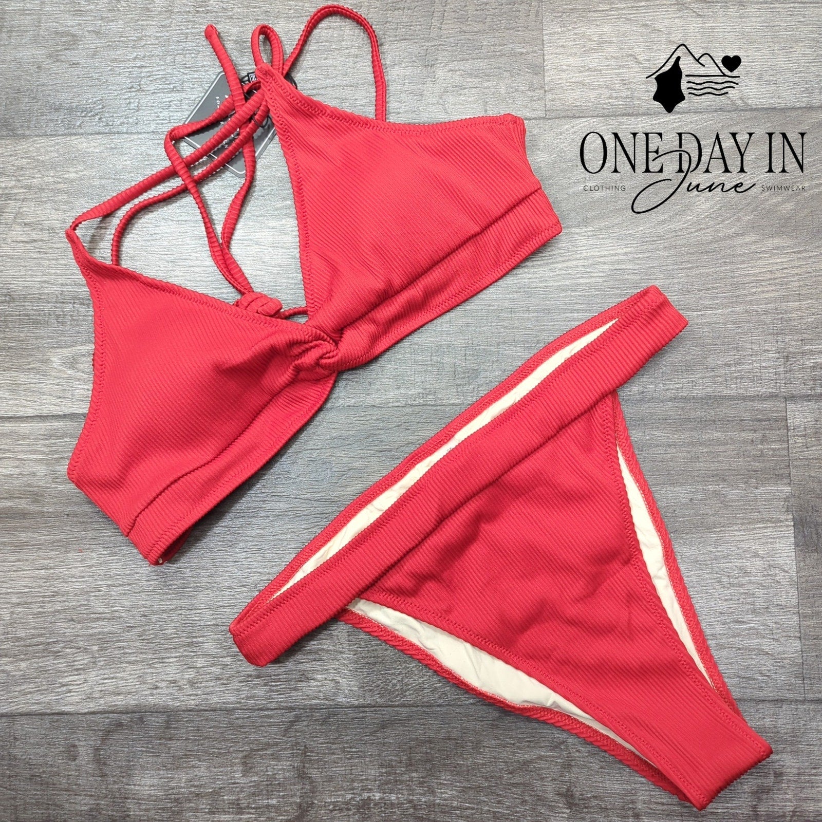 This crimson vision captures the essence of summer's most radiant moments, crafted from a luxurious blend of polyester and spandex that moves like liquid silk against sun-kissed skin. High-cut lines create an enchanting silhouette that speaks to the modern woman's desire for both comfort and allure. Ribbed texture adds subtle sophistication to this stunning two-piece that promises to turn every poolside gathering into your own personal soirée.