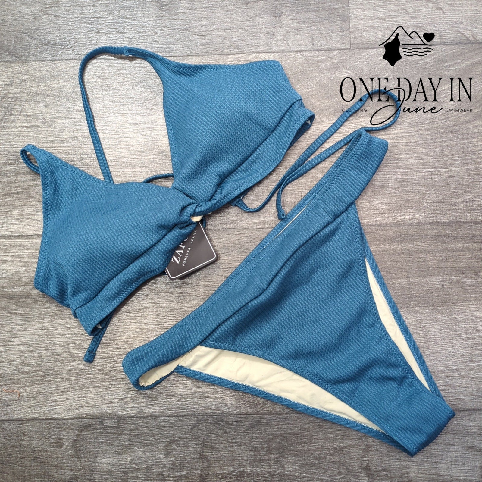 This green ribbed bikini will make you gleam and glow, with stretchy fabric that moves to and fro! A splish-splash sensation for sunny fun, this swimsuit delight is second to none!