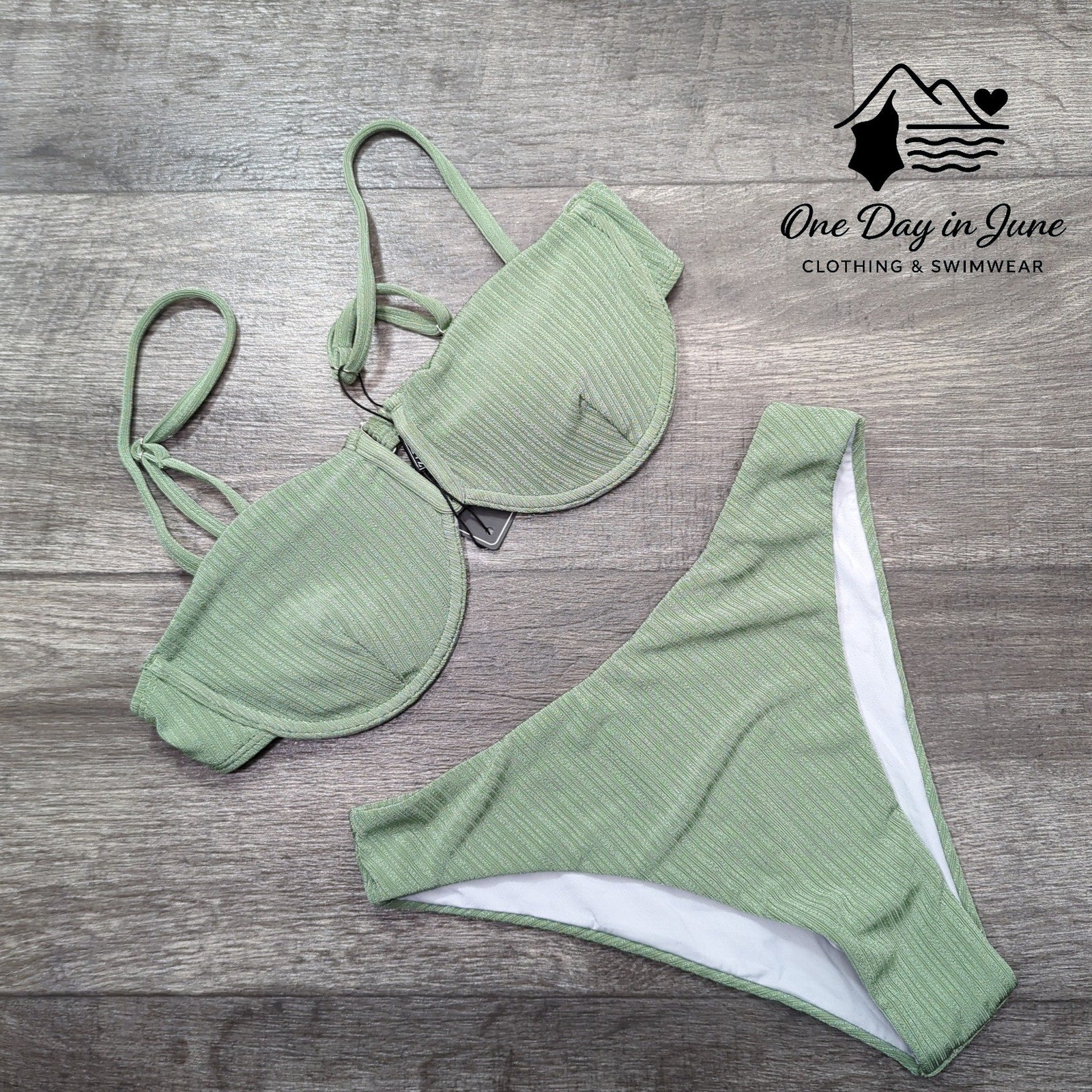 A splendiferous green swimsuit, so textured and neat, with a V wire design that simply can't be beat! This new Zaful bikini is ready for fun in the sun, for splashing and dashing and making beach days more fun.