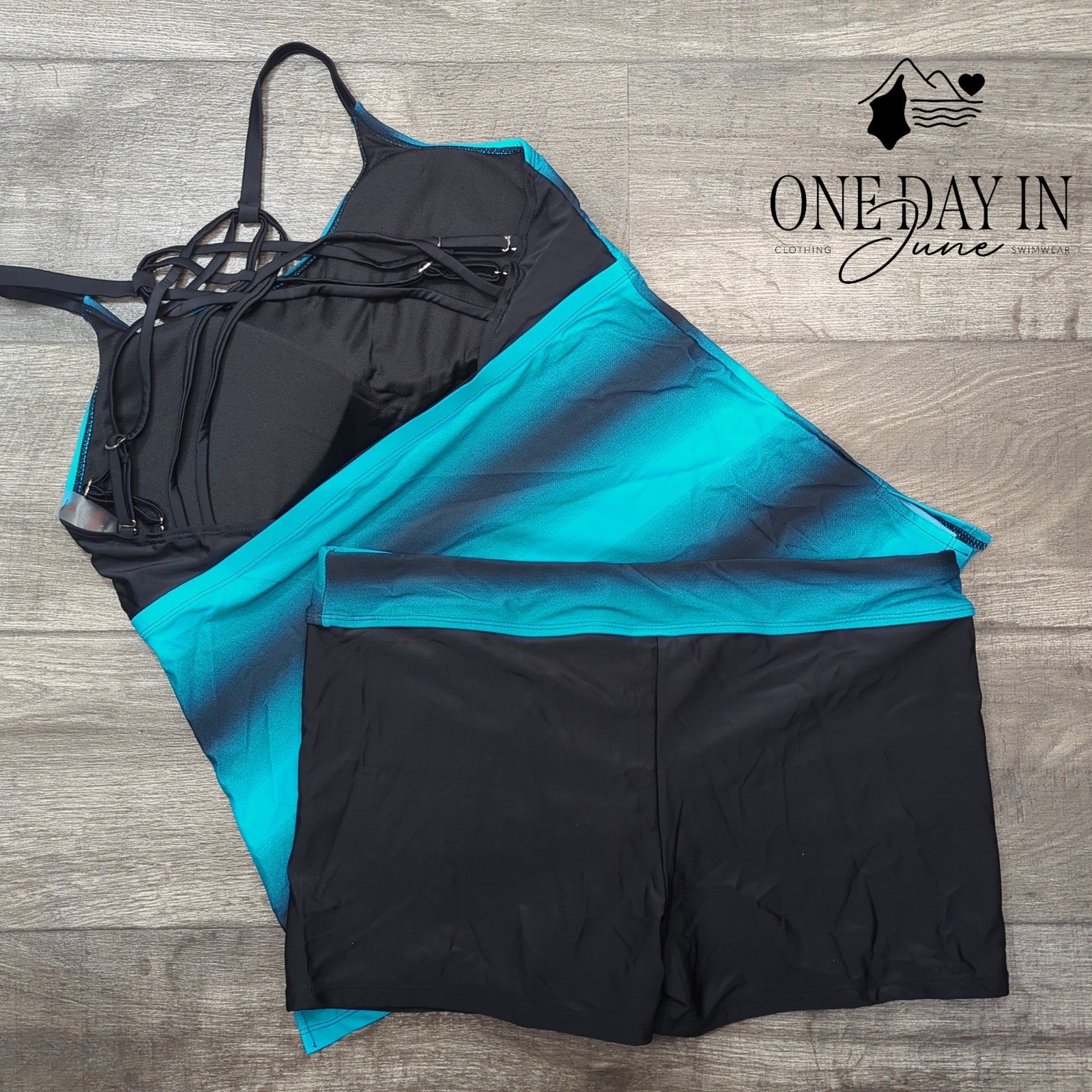 This blue beauty will make you feel oh-so-free, with a cage back design as pretty as can be! Made with stretchy fabrics that move and groove, this tankini swimsuit has got the perfect summer move!