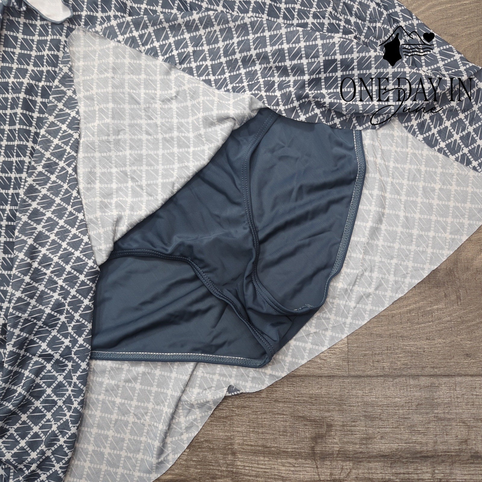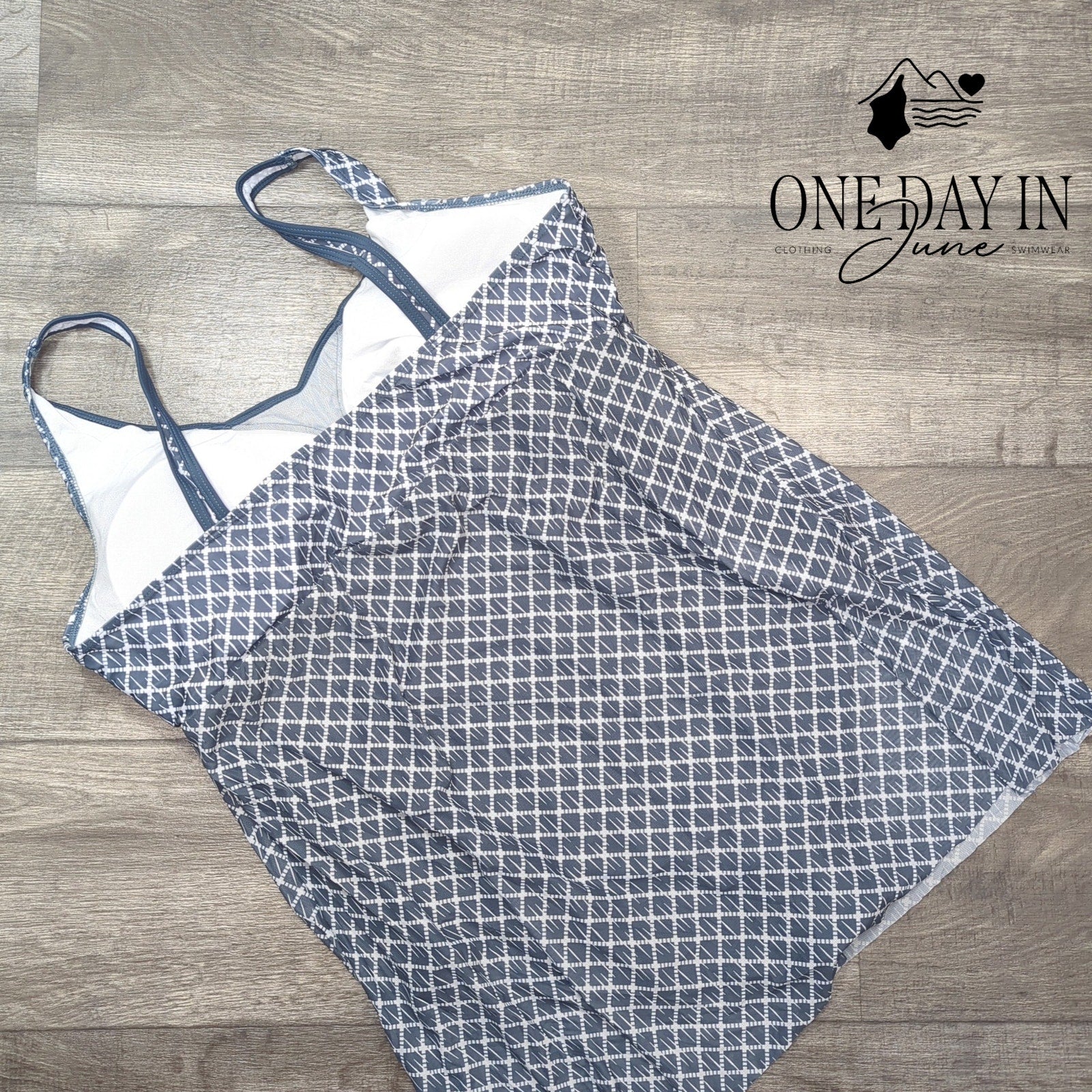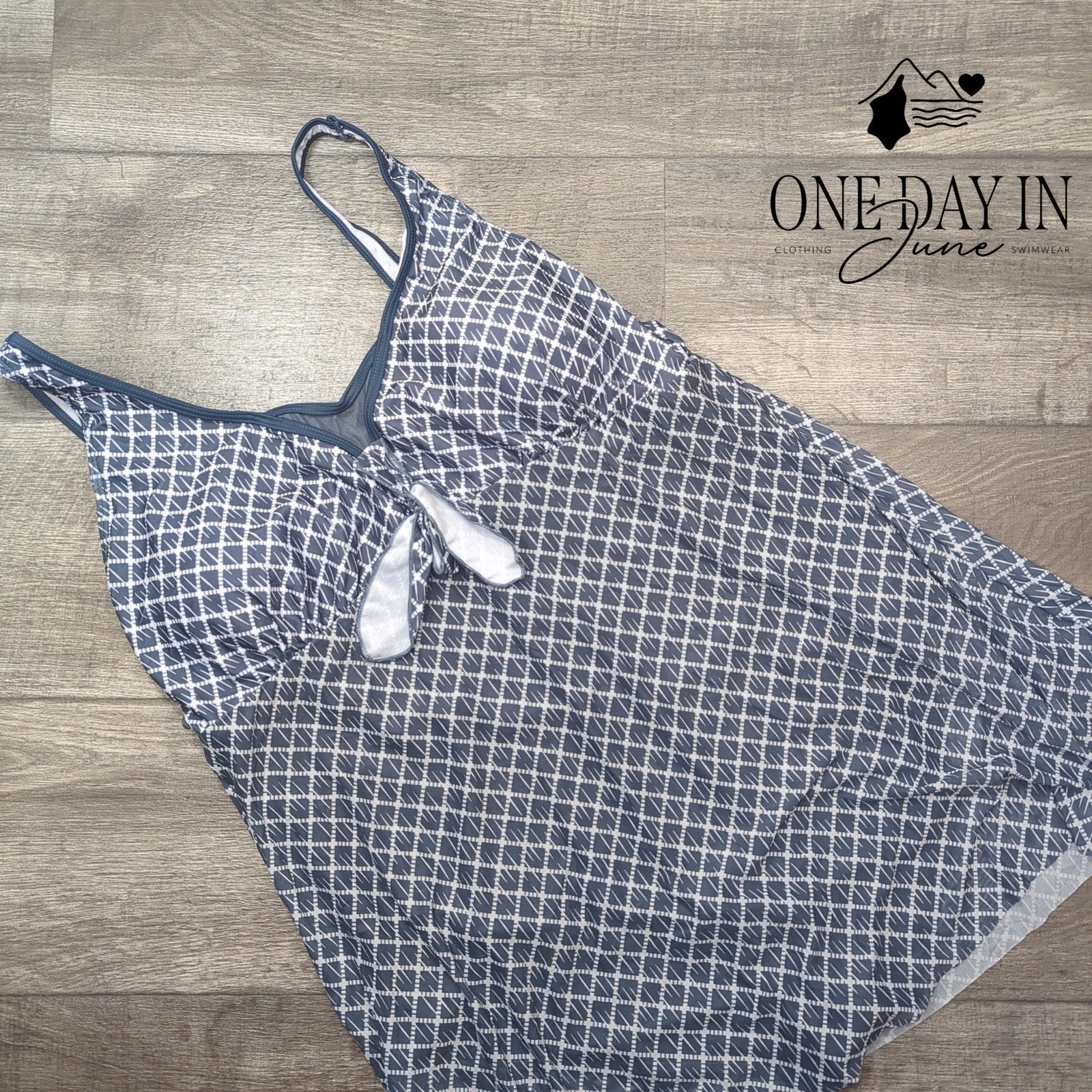 A most charming grey swimdress from Zando that shall prove quite flattering for the discerning lady seeking both modesty and style at the seaside. The clever design combines the elegance of a dress with the practicality of a swimsuit, crafted from a delightful blend of polyester and spandex for comfortable wear. This delightful piece arrives in pristine condition, having never been worn, and promises to be a most agreeable companion for summer diversions.