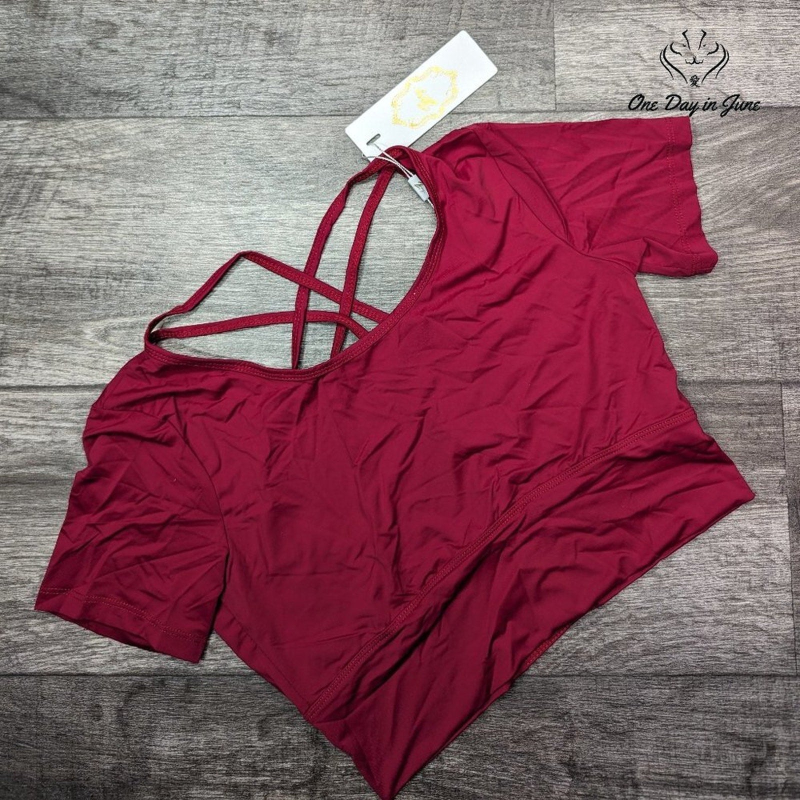Zexxy Short Sleeve Criss Cross Back Yoga Top Size M